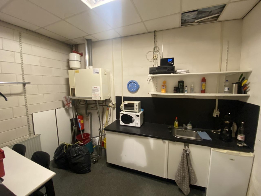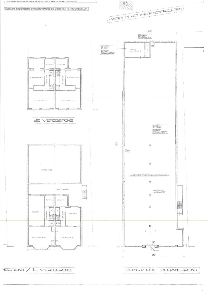 Begane grond: ca. 390 m² winkel met ca. 15 m² keuken, toilet en C.V.-ruimte. In de winkel is een opgang naar ca. 55 m² opslagruimte op de etage (eventueel om te bouwen naar woonruimte).