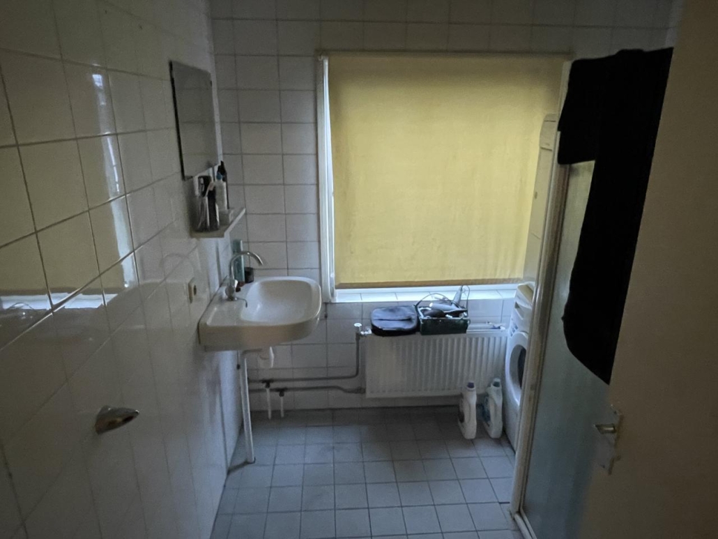 Tweede verdieping: overloop, 2 slaapkamers en een badkamer met douche en wastafel.