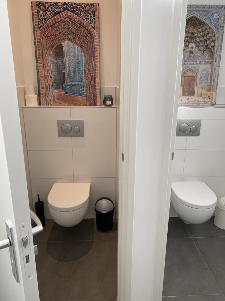 Keuken, pantry, toiletgroep. Verwarming d.m.v. warmtepomp in combinatie met vloerverwarming.