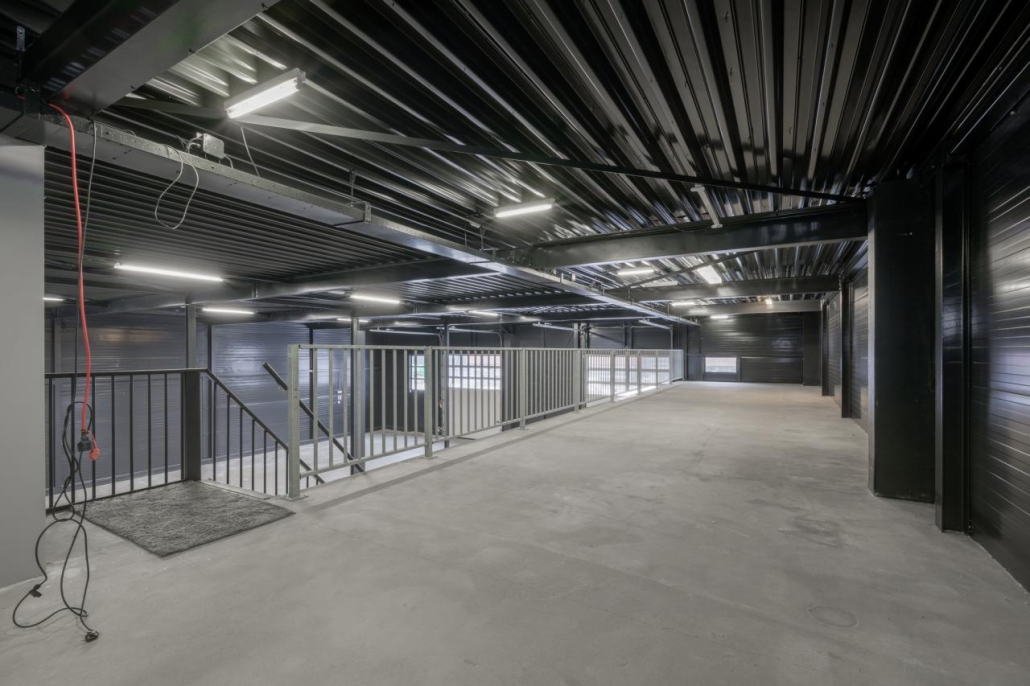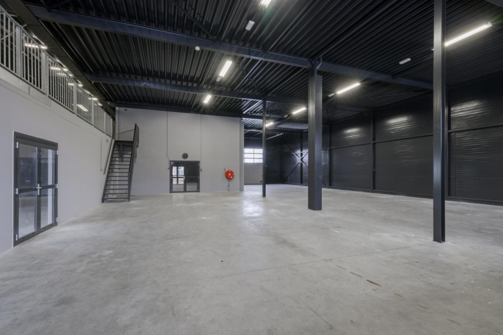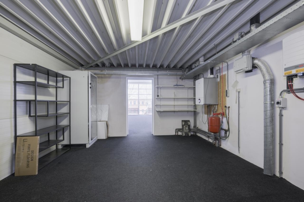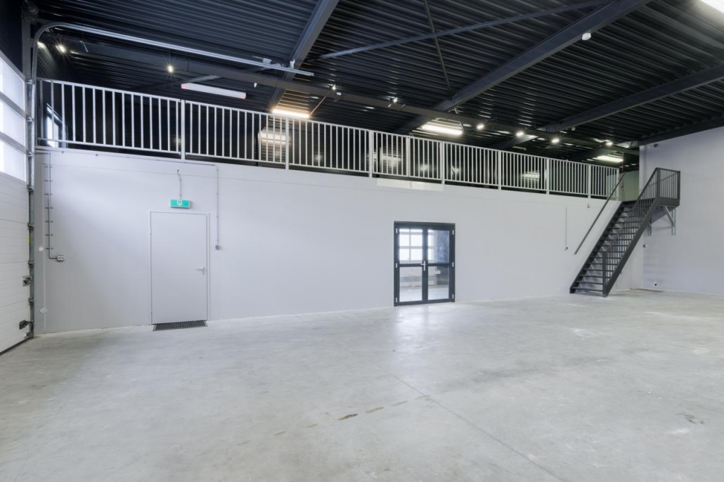 Op de verdieping zijn ramen aanwezig, waardoor deze ruimte zeer geschikt is voor het inrichten van kantoorruimte, showroom of aanvullende opslag.