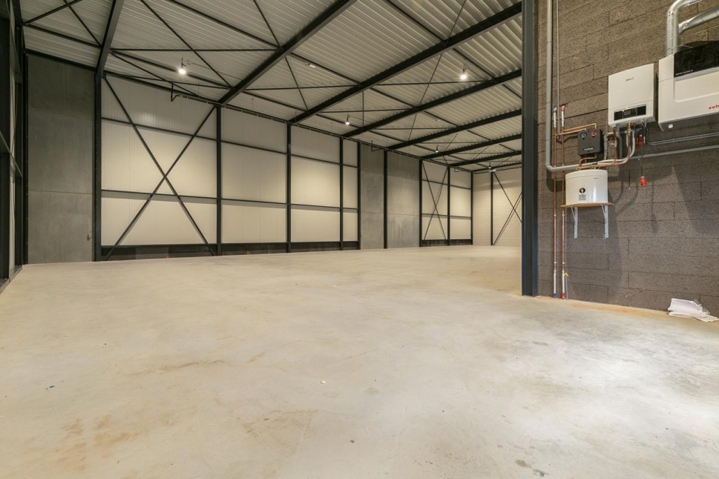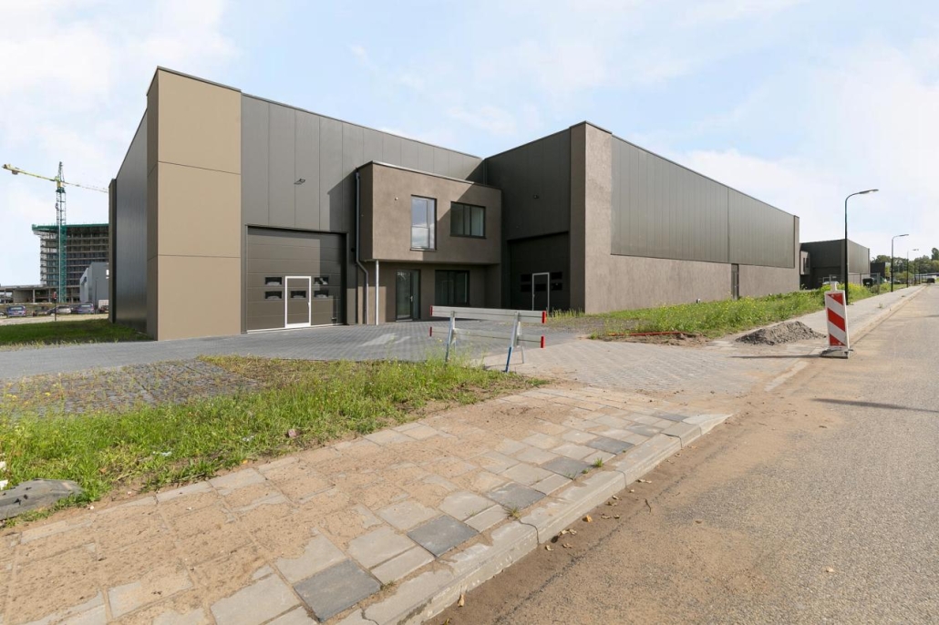 Duurzame (gasloze) bedrijfshal met kantoor.