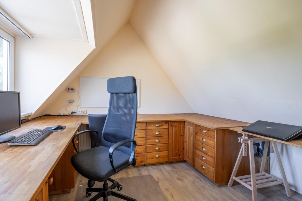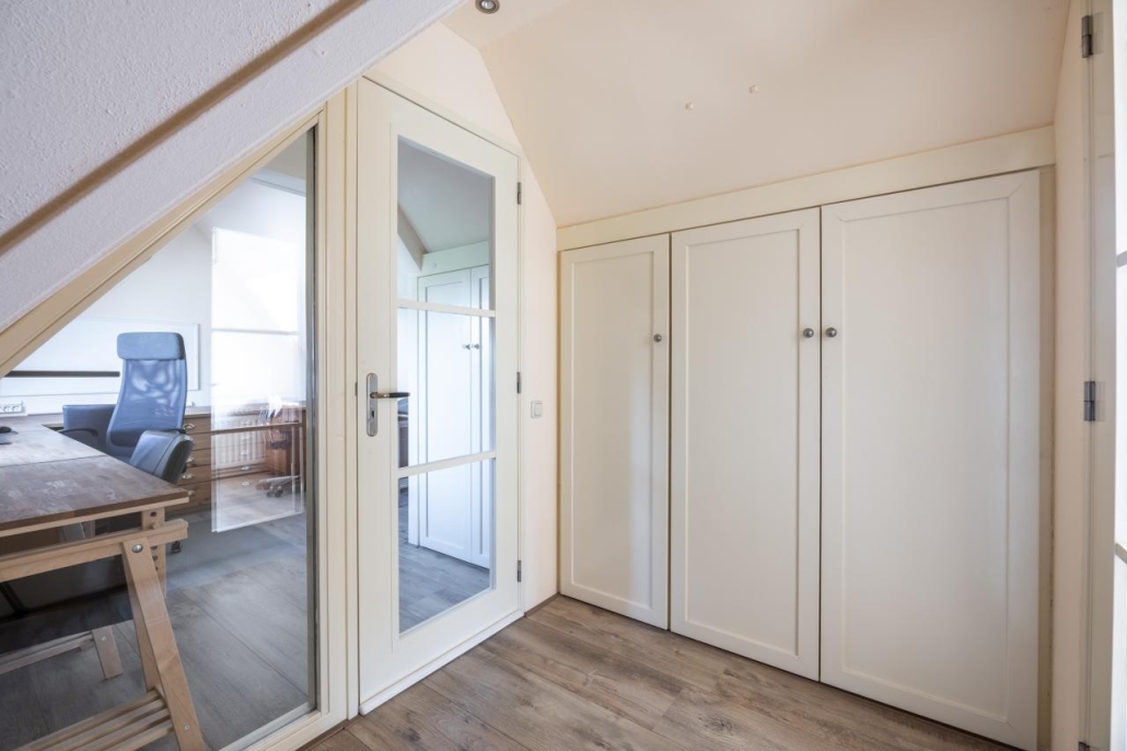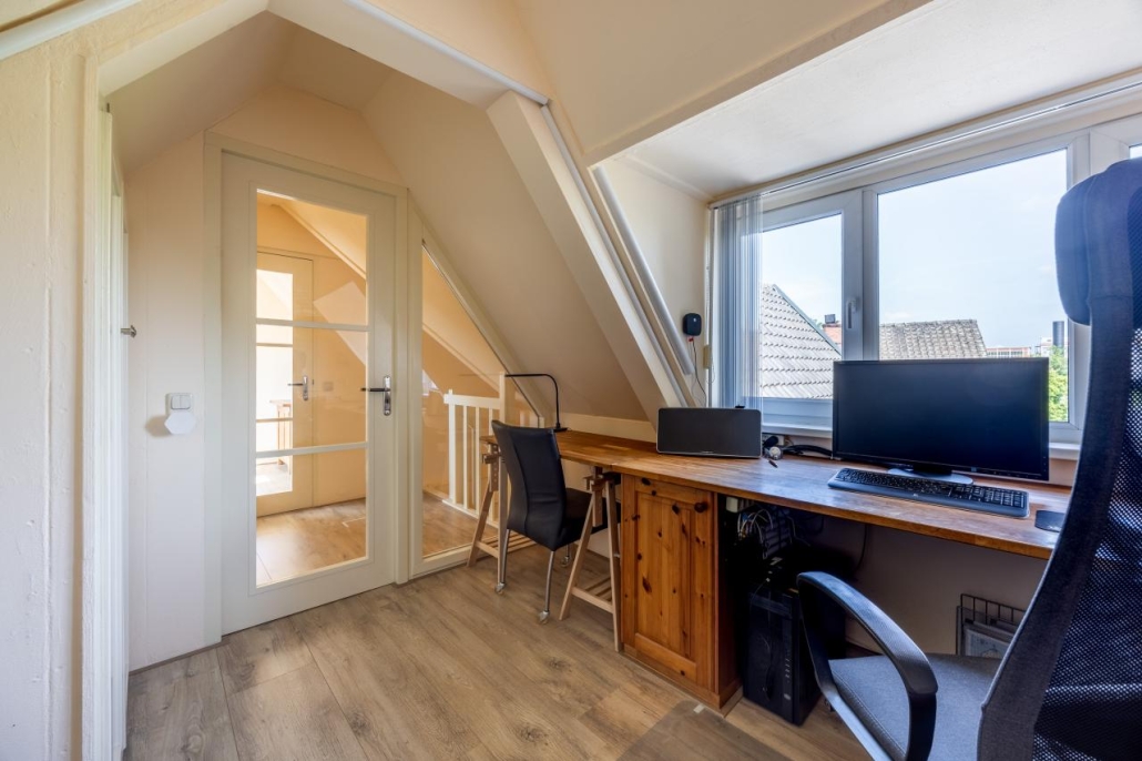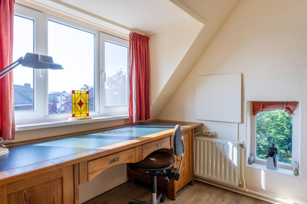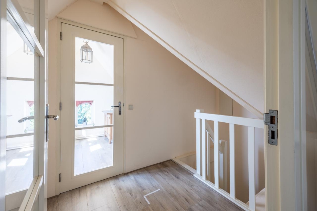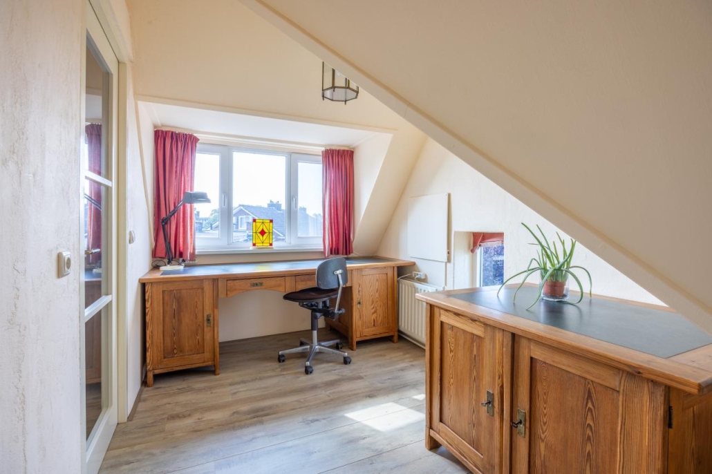 Tweede verdieping: Overloop, twee slaapkamers, beide voorzien van een dakkapel. De kamers zijn tevens geschikt als studeer-/werkkamer.
