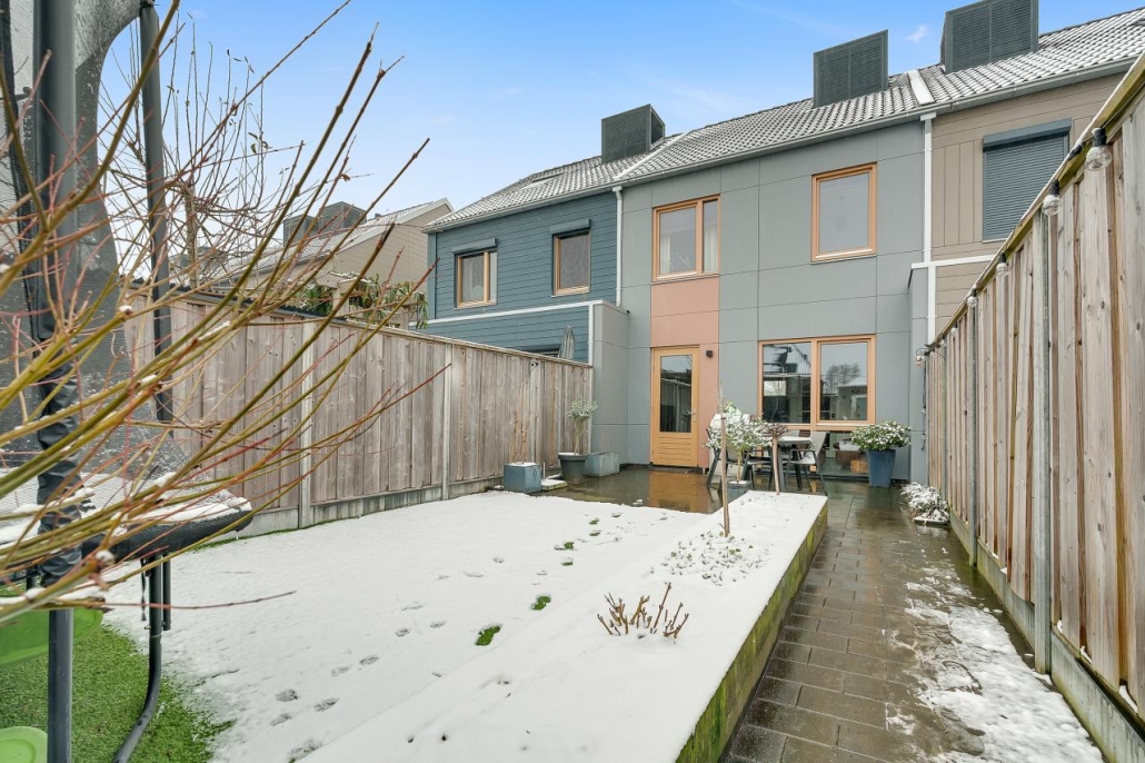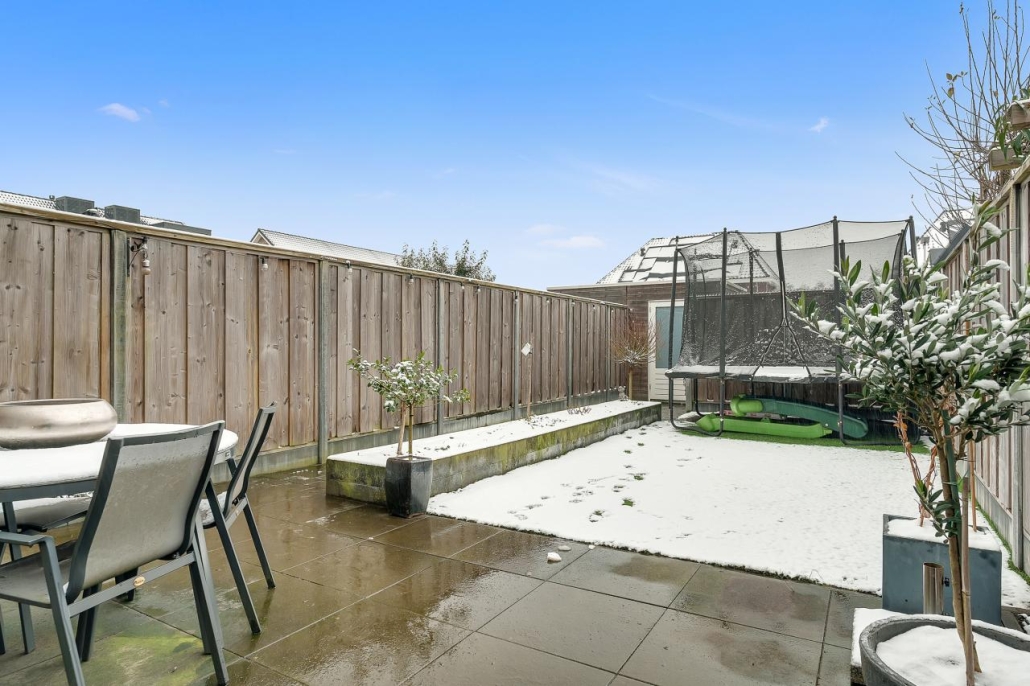 De tuin op het noordwesten is een fijne plek om te ontspannen na een lange dag. Daarnaast beschik je over een eigen parkeerplek en een houten berging voor fietsen en tuingereedschap.