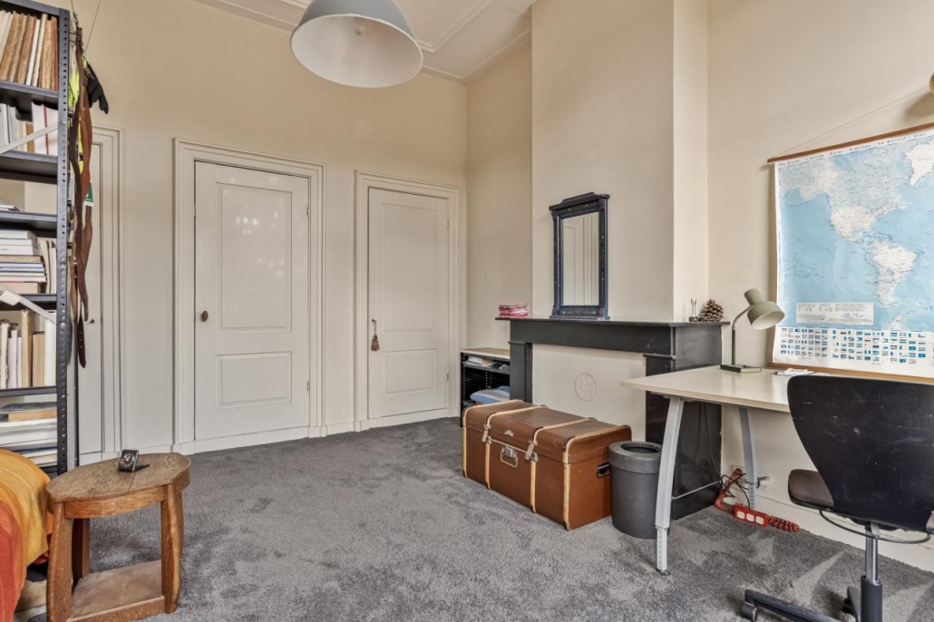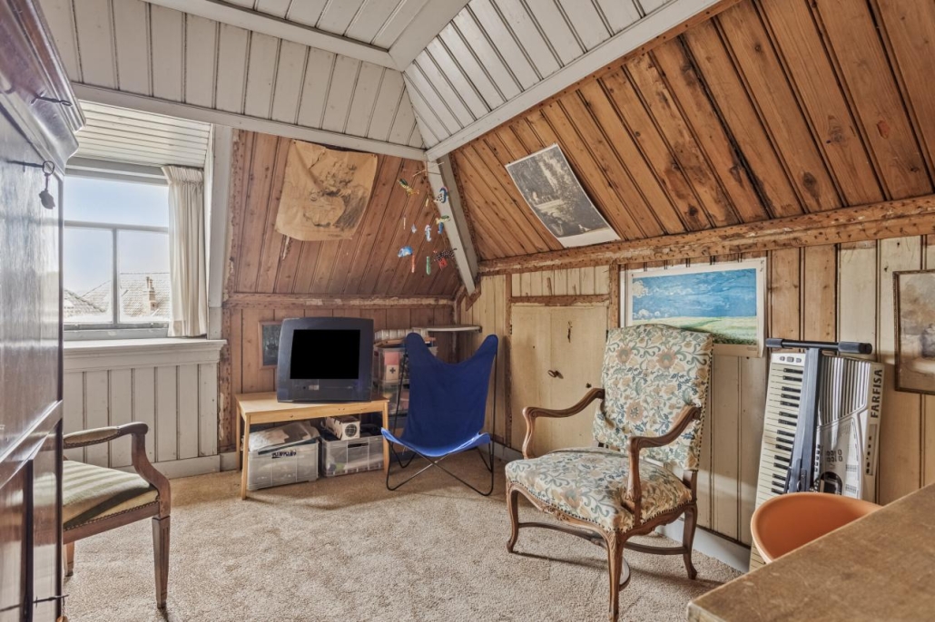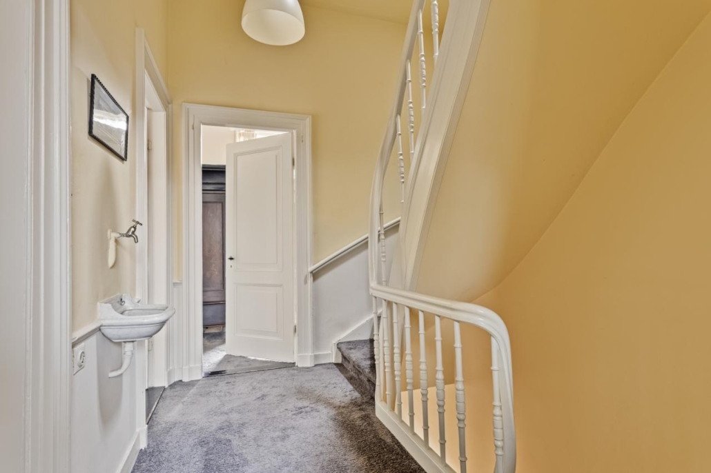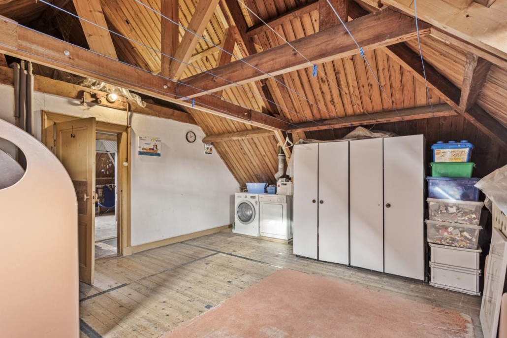 De authentieke zolderverdieping met dienstvertrekken biedt volop mogelijkheden met twee extra slaapkamers en een grote zolderruimte. Hier bevinden zich ook de aansluitingen voor wasmachine en droger.