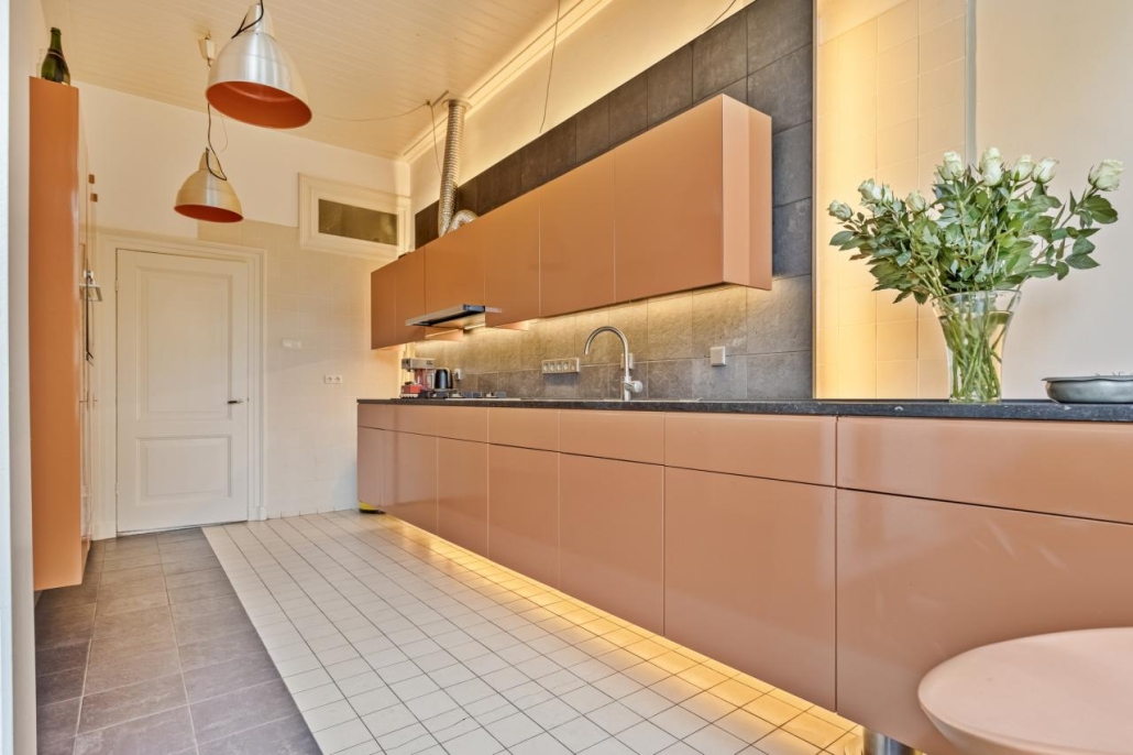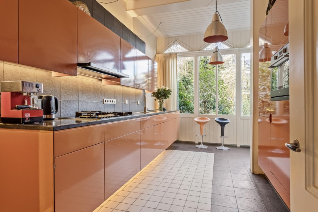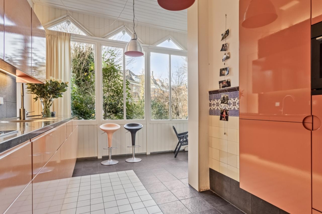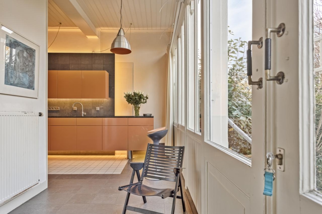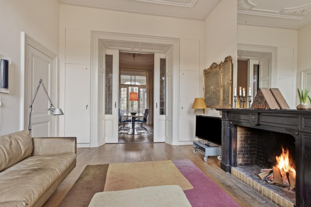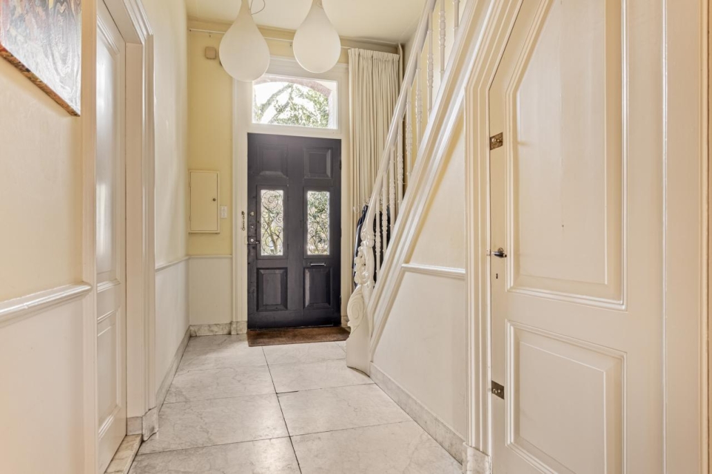 Bij binnenkomst via de overdekte entree word je verwelkomd in een imposante hal met een marmeren vloer, een prachtige trappartij en een toiletruimte met originele tegels en fonteintje. De royale kamer en suite ademt luxe met originele suitedeuren voorzien van glas in lood, beuken parketvloeren, natuurstenen schouwen waarvan één met open haard en rijk versierde stucplafonds. Aansluitend is er een sfeervolle, goed bezonde serre, waar u heerlijk kunt zitten in de (na)middagzon, met zicht op de tuin. De dichte keuken is een lust voor het oog, met een natuurstenen werkblad, hoogwaardige op maat gemaakte inrichting en moderne inbouwapparatuur.