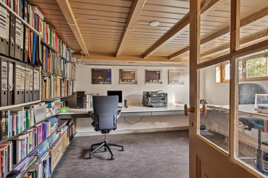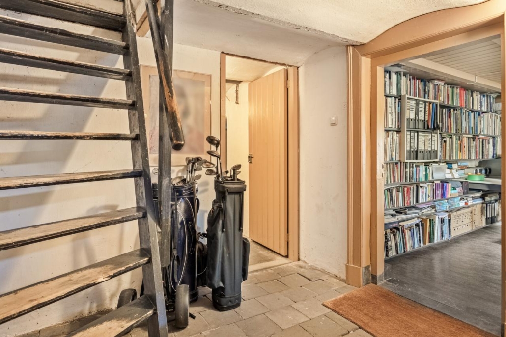 Het souterrain heeft een uitstekende stahoogte en biedt diverse gebruiksmogelijkheden. Er is een verkeersruimte, een kantoor, een provisieruimte, een berging met toegang tot de tuin en een hobbyruimte.