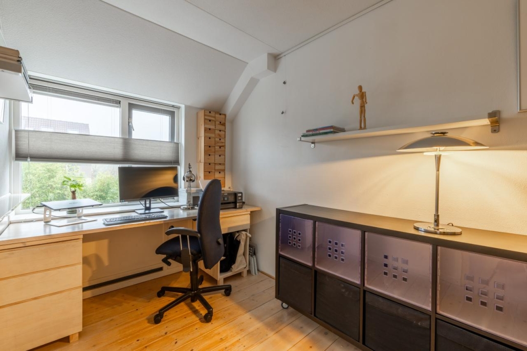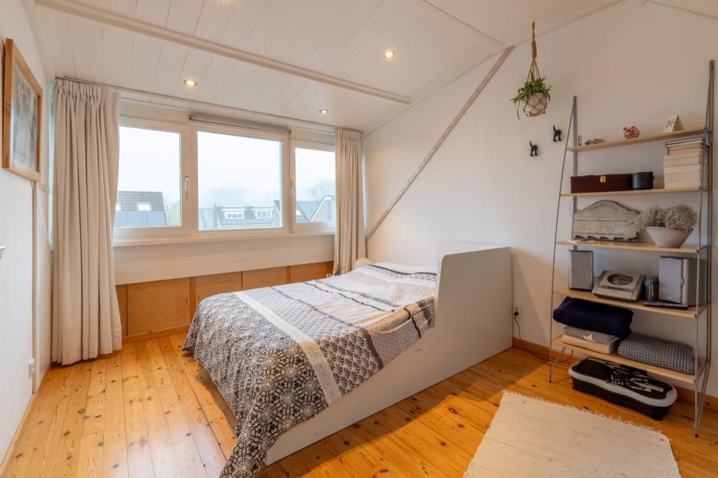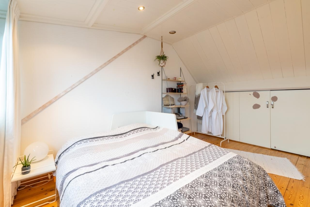 Tweede verdieping: Overloop met stookruimte en een ruime slaapkamer met dakkapel.