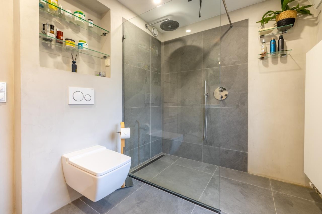 Deze ruime woning heeft 4 slaapkamers waarvan 3 op de eerste verdieping en 1 op de tweede verdieping. Op de eerste verdieping een prachtige ruime badkamer met grote inloopdouche, toilet en dubbele wastafel.