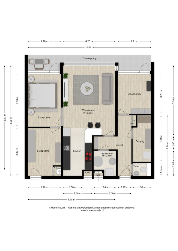 -Ruimte & Licht: Een royale woonoppervlakte van 85 m² met een prettige plafondhoogte van 2,60 meter in de woonkamer, wat een gevoel van vrijheid geeft.