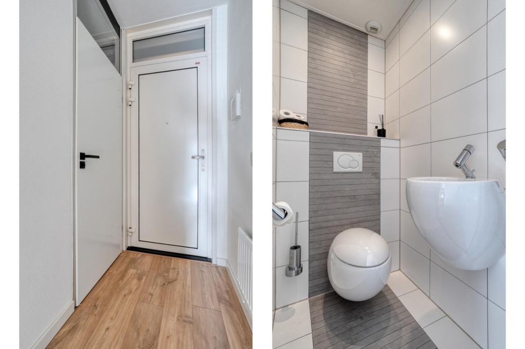 Entree & Hal: U komt binnen via de veilige, afgesloten centrale hal. De hal in het appartement zelf is breed opgezet en daarmee zeer toegankelijk (ook voor een rollator). Vanuit de hal bereikt u alle vertrekken, waaronder het moderne, verhoogde toilet met fontein.