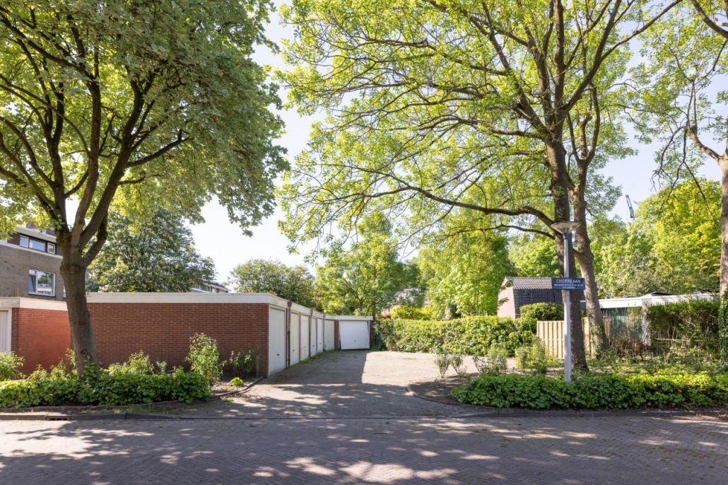 Achter in de tuin is er toegang tot de garagebox. Deze is met de auto te bereiken via de Chopinlaan.