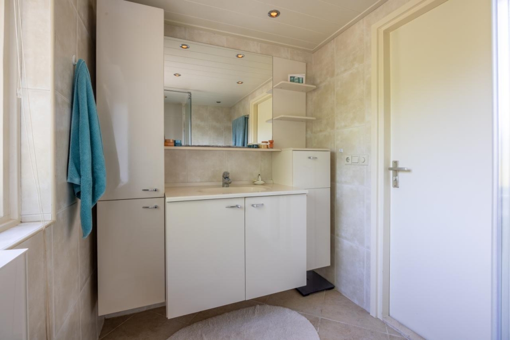 Op de eerste verdieping 3 slaapkamers waarvan 1 met 2 vaste kastenwanden en 1 met wastafel. De badkamer is gesitueerd aan de achterzijde van de woning. Vaste trap naar de tweede verdieping waar zich de 4e slaapkamer met wastafel bevindt. Tevens is er een ruime werkkamer met een groot, nieuw dakraam.