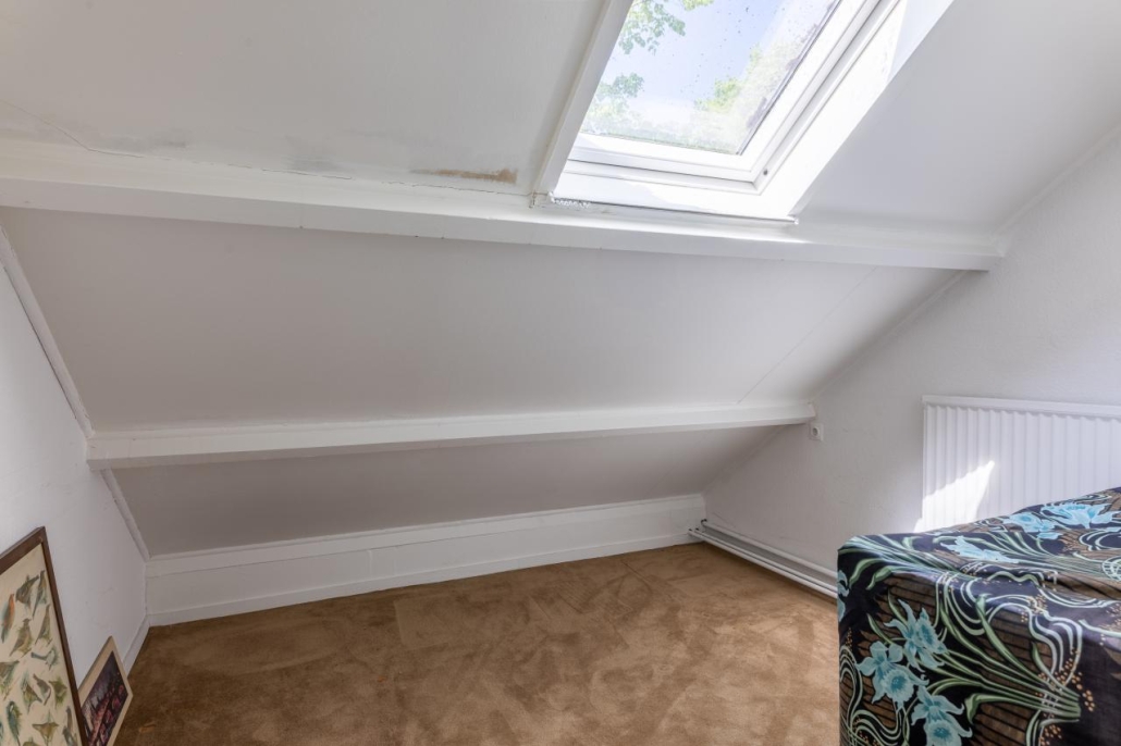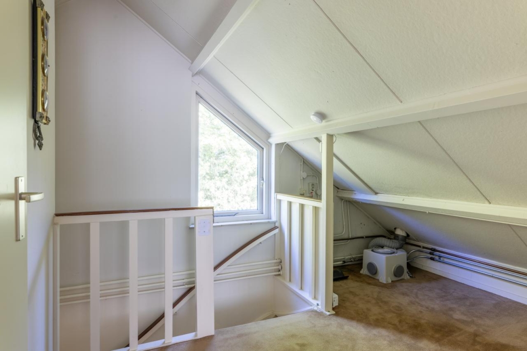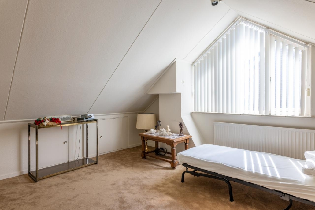 Tweede verdieping: Te bereiken met vast trap. 4e slaapkamer met wastafel en een werkkamer met dakraam. Opstelling CV en mechanische ventilatie.