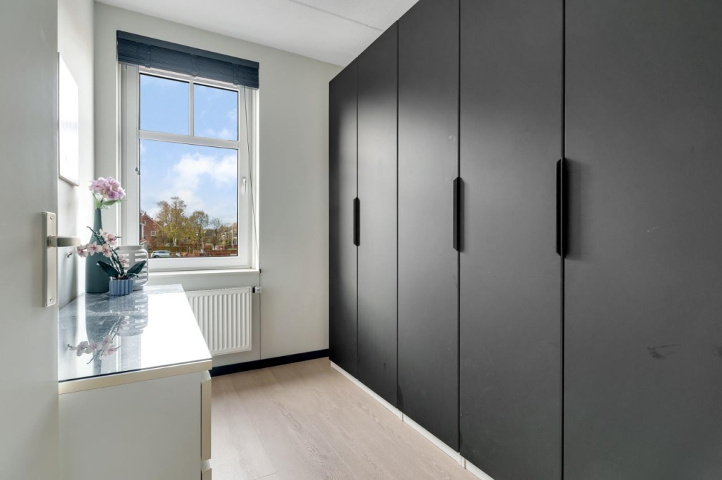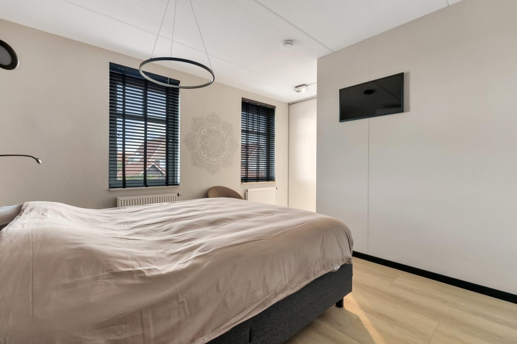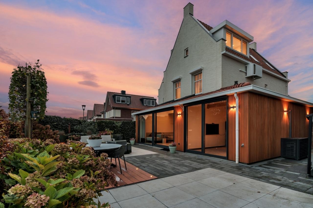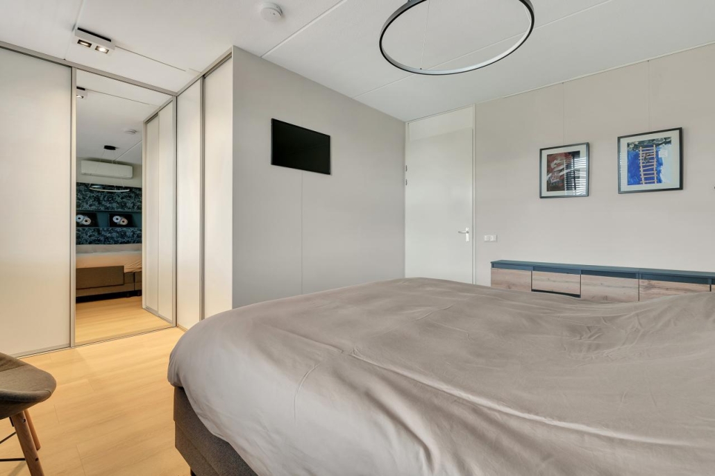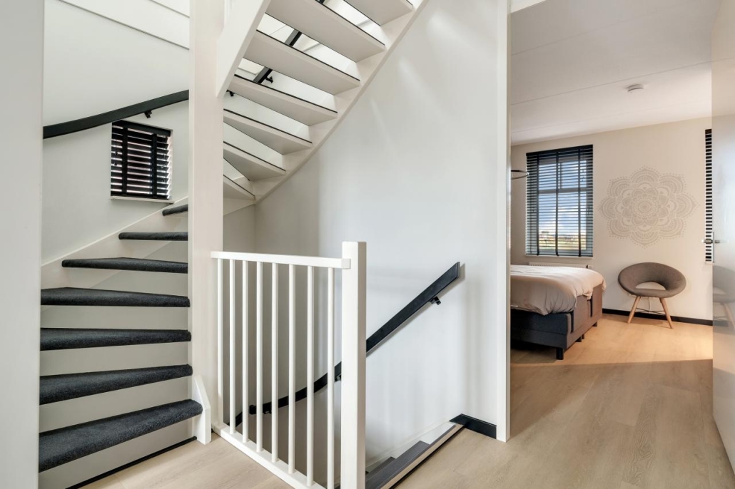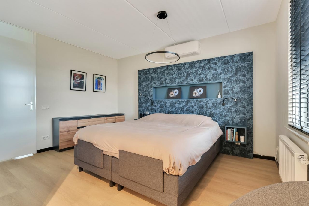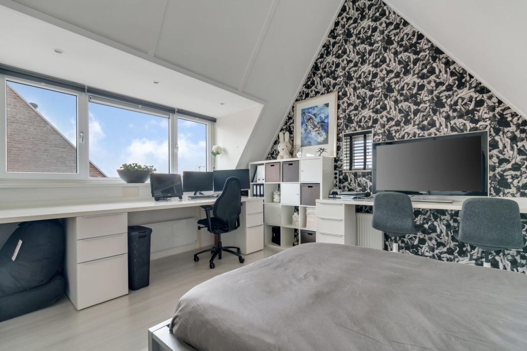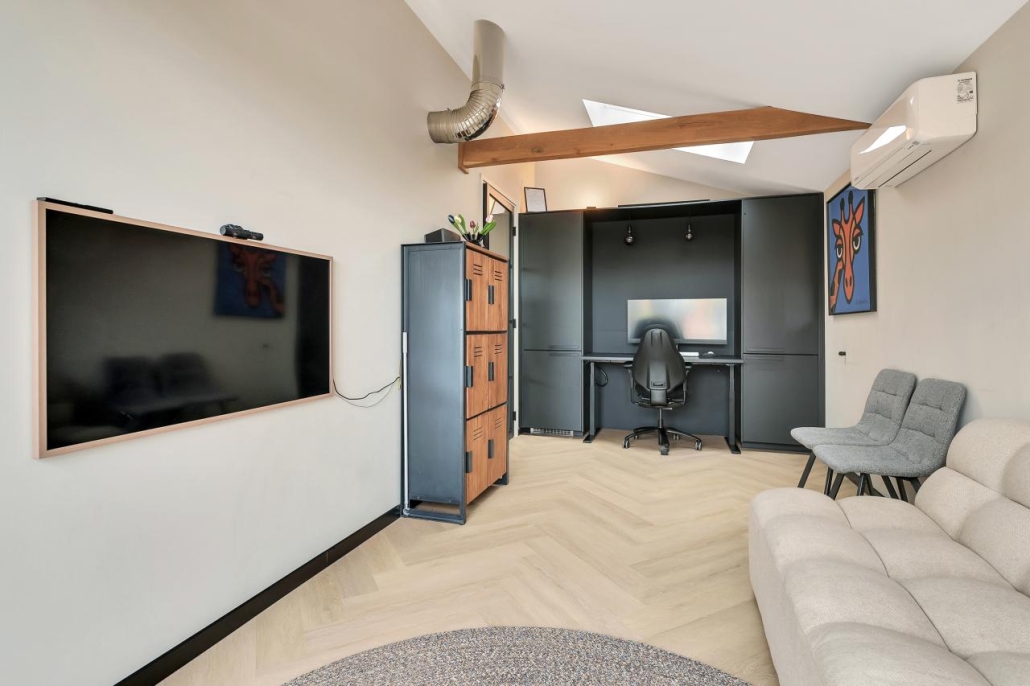 Aan de zijkant van de woning is een extra kamer met airco unit gecreëerd, wat het een ideale ruimte maakt voor thuiswerken of als speelkamer voor de kinderen. Ook hier is het uitzicht op de tuin prachtig en kun je via deze ruimte de tuin betreden. De benedenverdieping is voorzien van een moderne visgraatvloer, vloerverwarming en design deuren (in 2022) wat bijdraagt aan de luxe uitstraling van de woning.