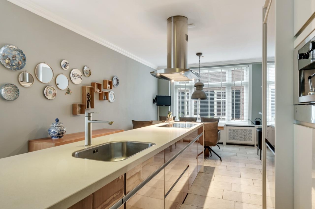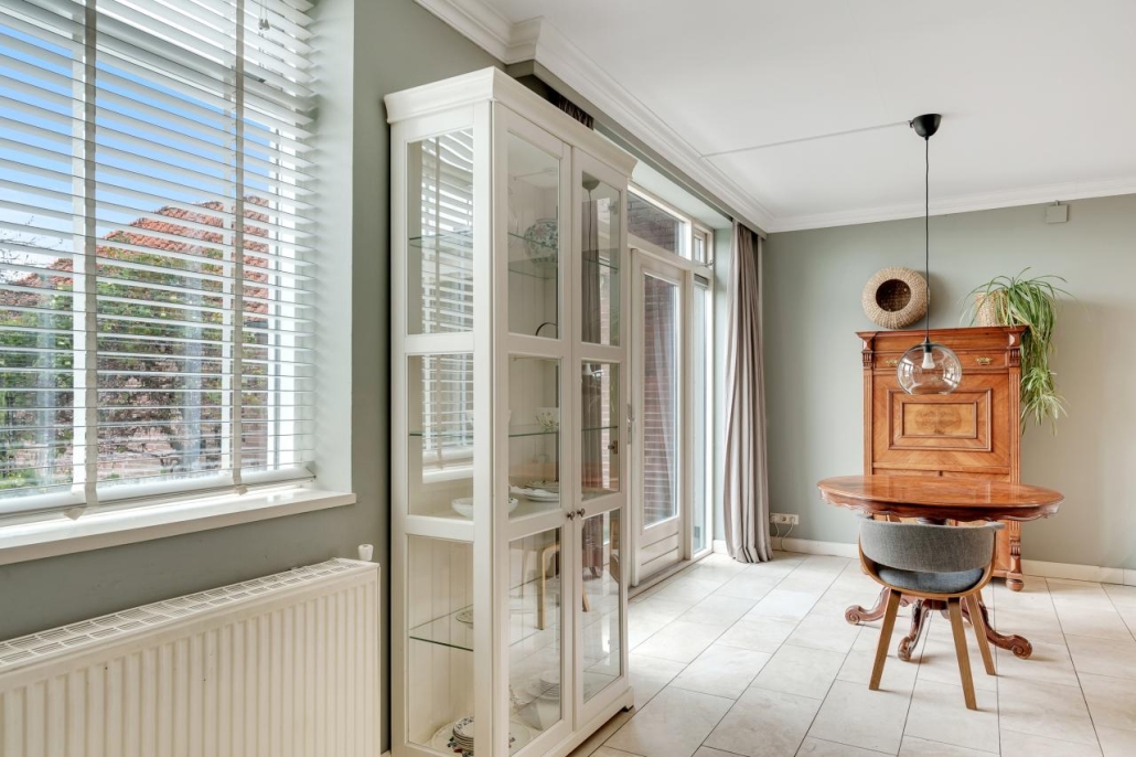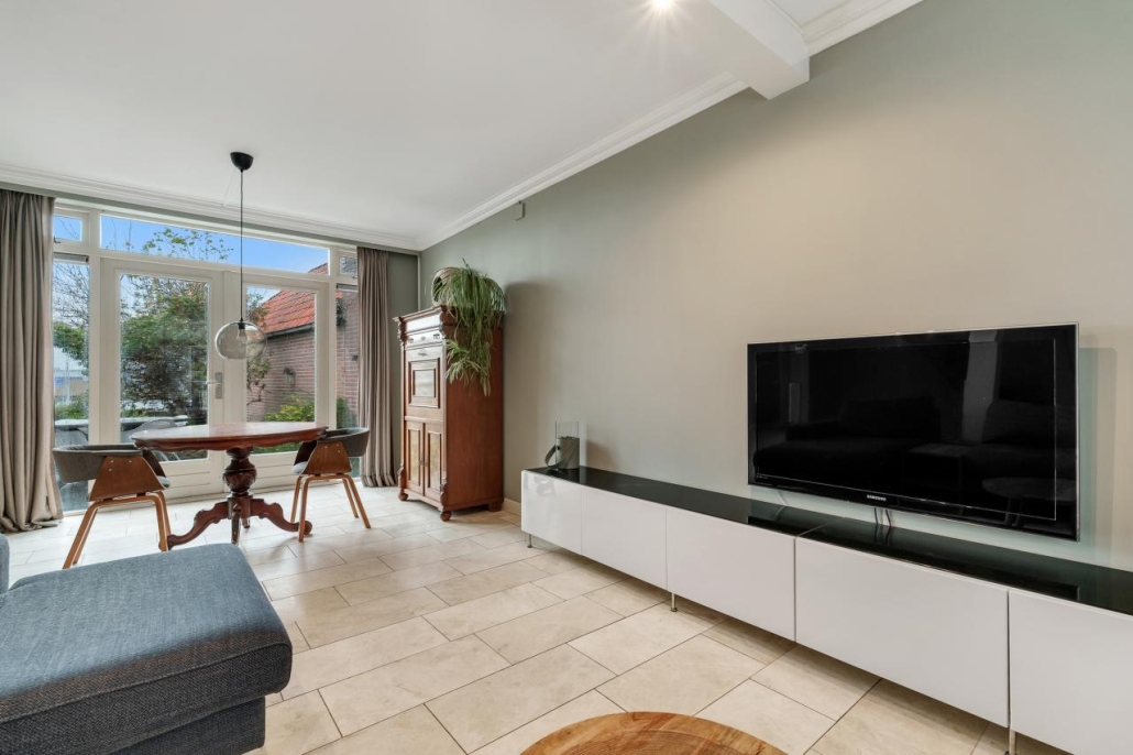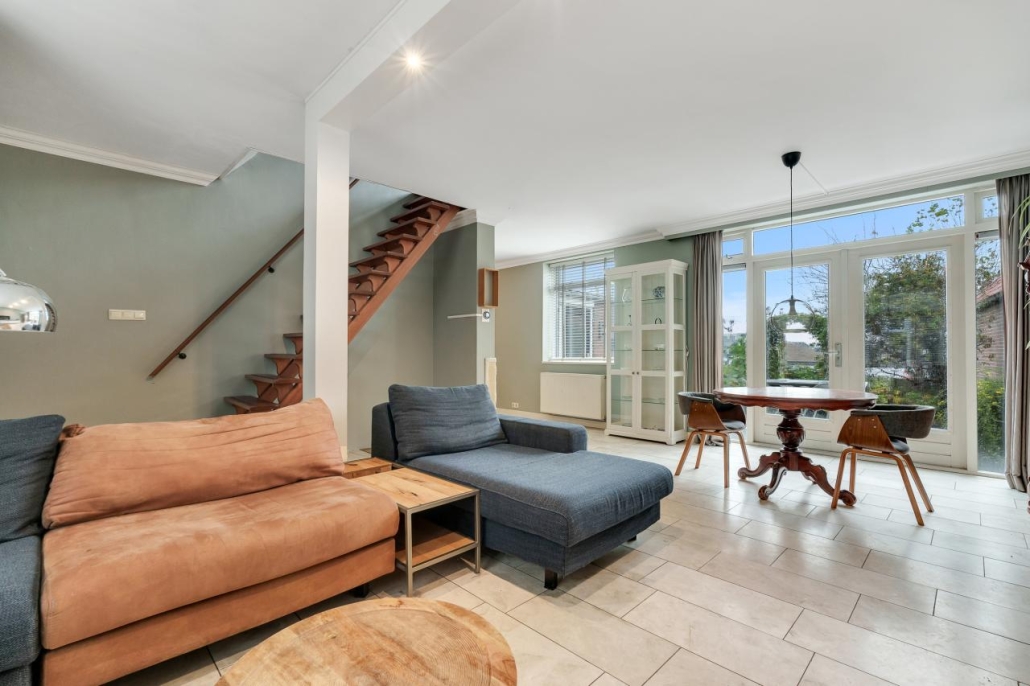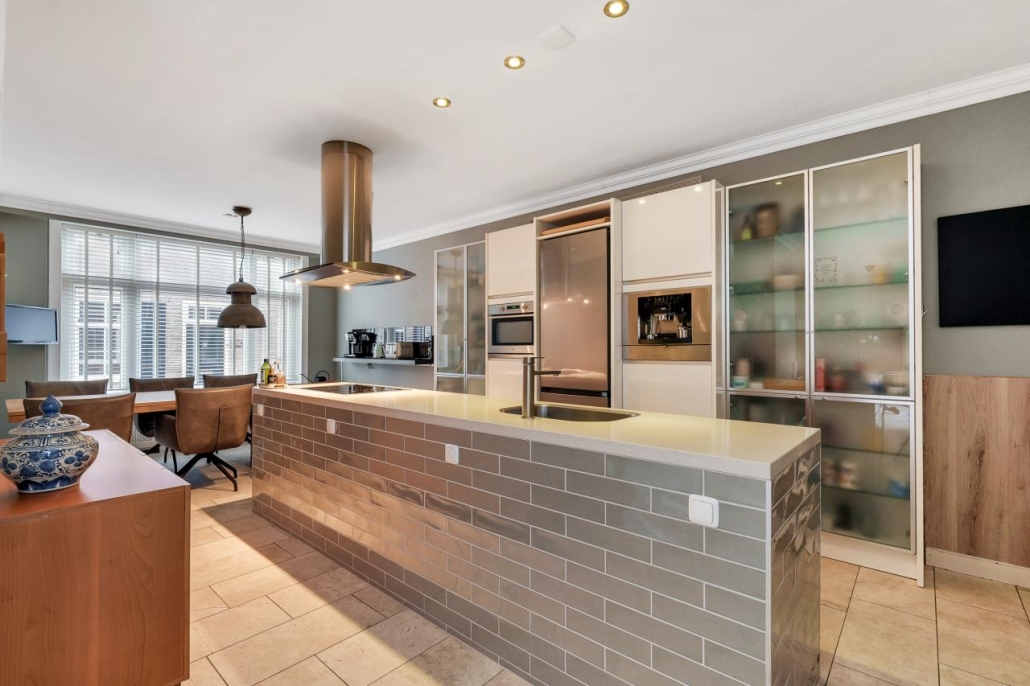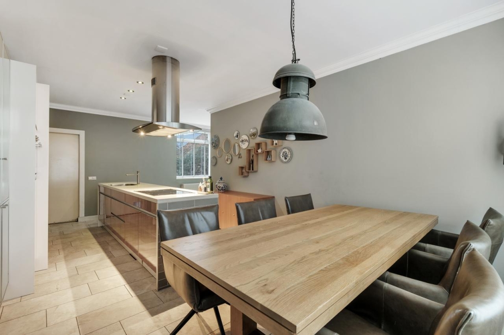 De woning biedt een royale leefkeuken en een lichte, brede woonkamer met vrij uitzicht op de tuin. Dankzij de grote raampartijen en openslaande tuindeuren valt er gedurende de hele dag veel licht naar binnen, wat de leefruimte een warme en uitnodigende sfeer geeft. De keuken is praktisch ingedeeld en biedt volop werk- en bergruimte, perfect voor wie graag kookt of gezellig lang tafelt.