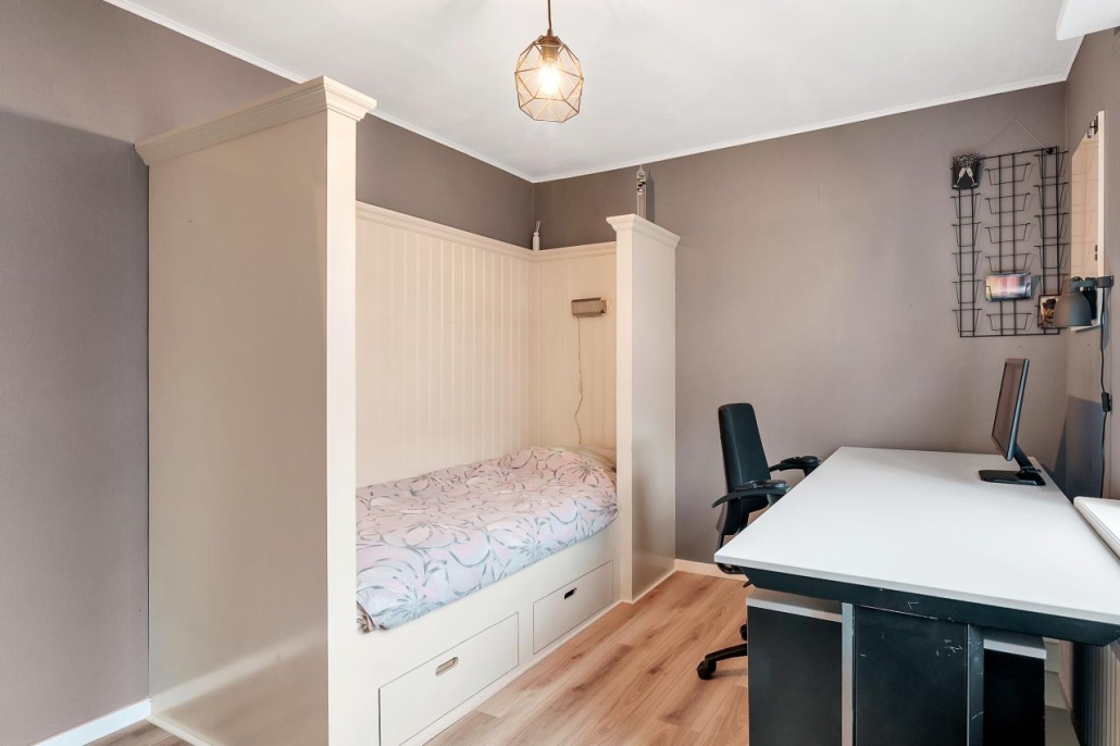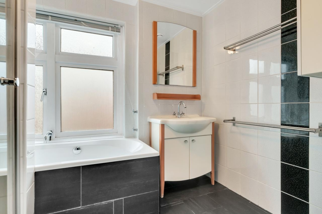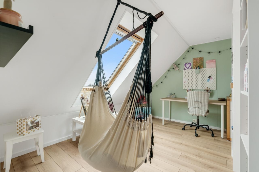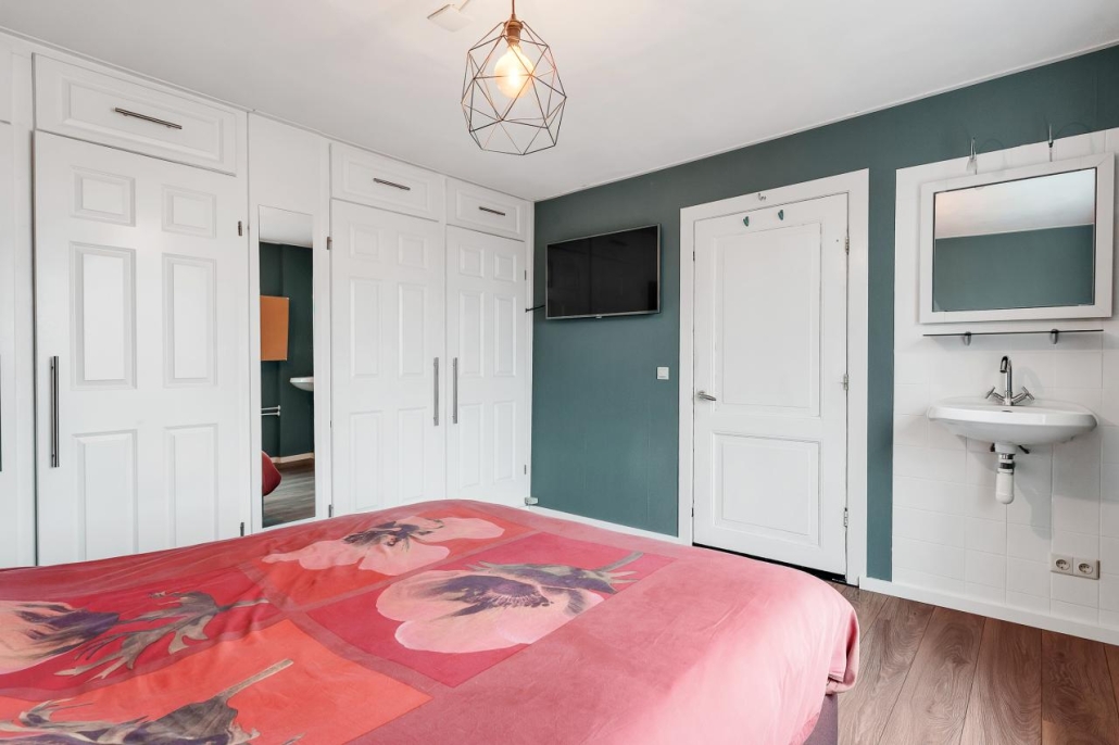 Verspreid over de eerste en tweede verdieping liggen maar liefst vijf slaapkamers. De kamers zijn stuk voor stuk ruim, waardoor ze eenvoudig in te richten zijn als kinder-, logeer- of werkkamer. Op de eerste verdieping is ook de badkamer gelegen voorzien van douche, wastafel en ligbad, het toilet is separaat gelegen op de verdieping.