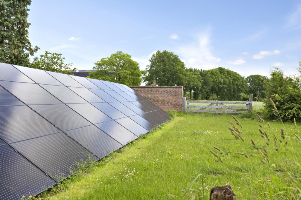 -40 zonnepanelen met een opbrengst die matcht met het totale verbruik van beide panden, laadpaal en twee robotmaaiers.