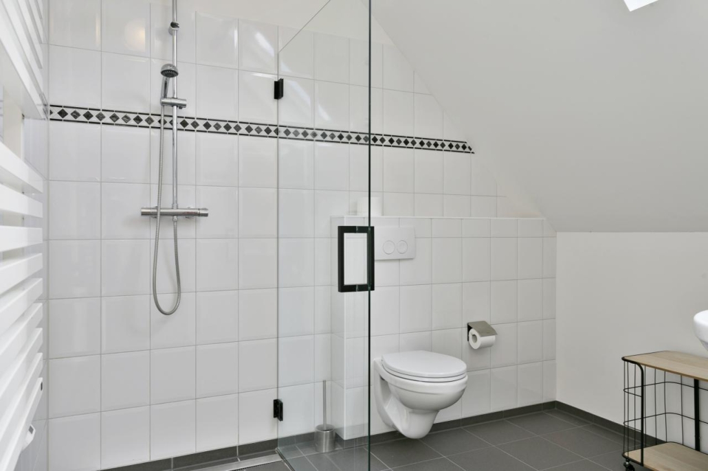 Via de trap in de entree bereikt u de overloop op de eerste verdieping. Op deze etage beschikt u over twee ruime slaapkamers met beiden een eigen badkamer. De badkamers zijn voorzien van een douche, wastafel en hangcloset.