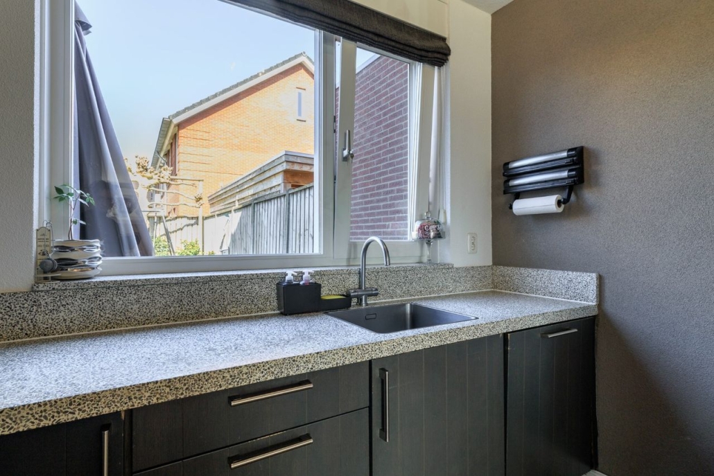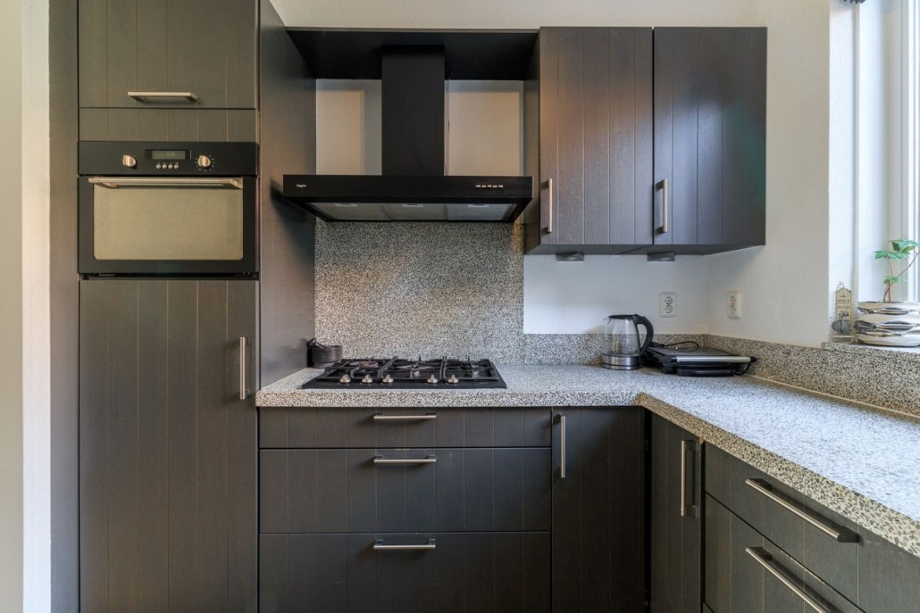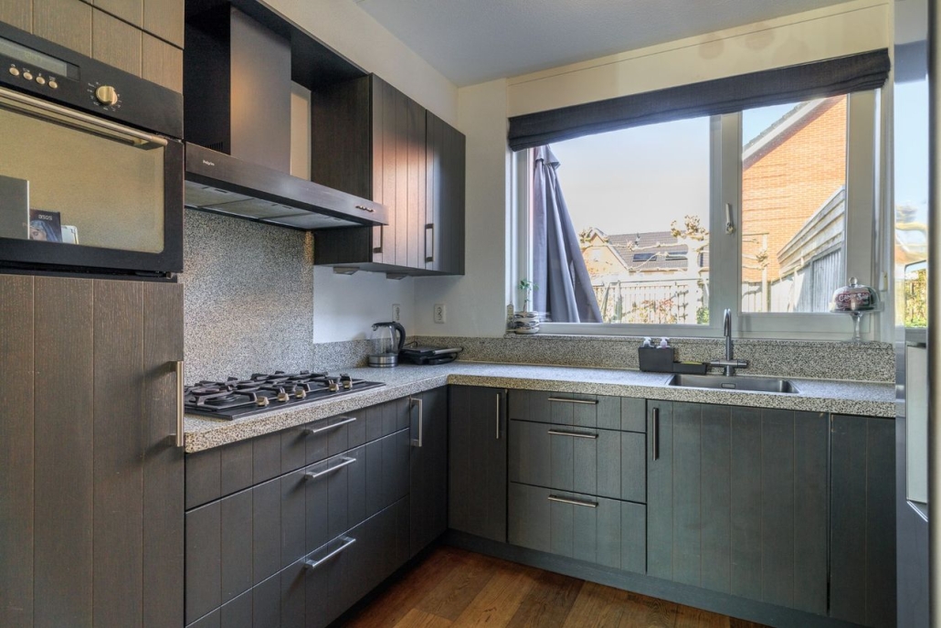 Open keuken: de keuken is voorzien van een moderne en hoekopgestelde inbouw keuken (2009) met daarin een gaskookplaat, RVS afzuigkap, koelkast, vaatwasser, combi- oven.