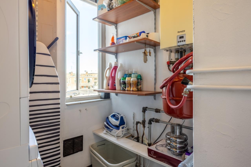 Verder is er een praktische, multifunctionele ruimte met de opstelling van de cv-installatie en aansluitingen voor wasmachine en droger.