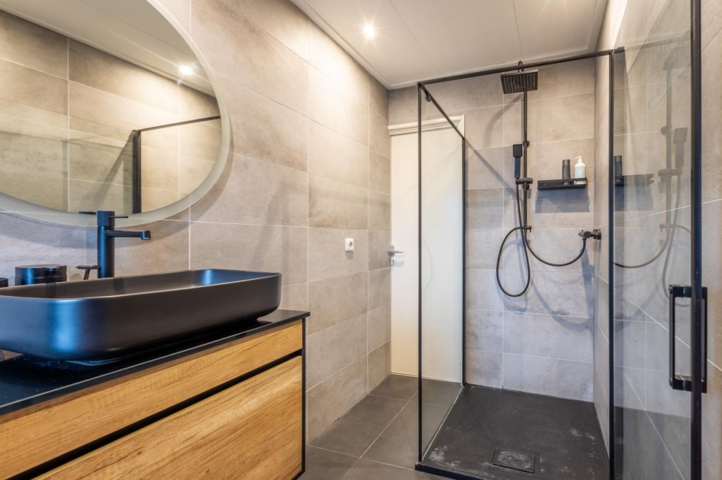 Op de eerste verdieping bevinden zich 2 slaapkamers, waar eenvoudig een 3e slaapkamer te realiseren is. De moderne badkamer is praktisch ingedeeld met een inloopdouche en wastafel in meubel. Met vaste trap te bereiken