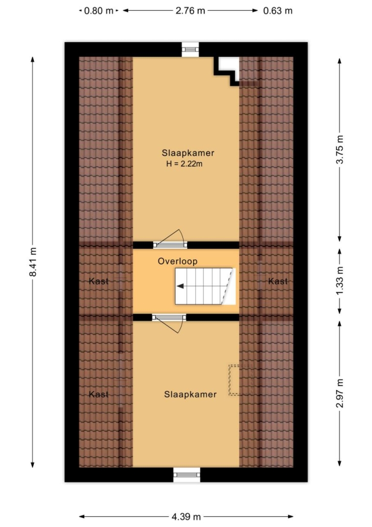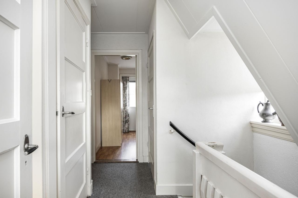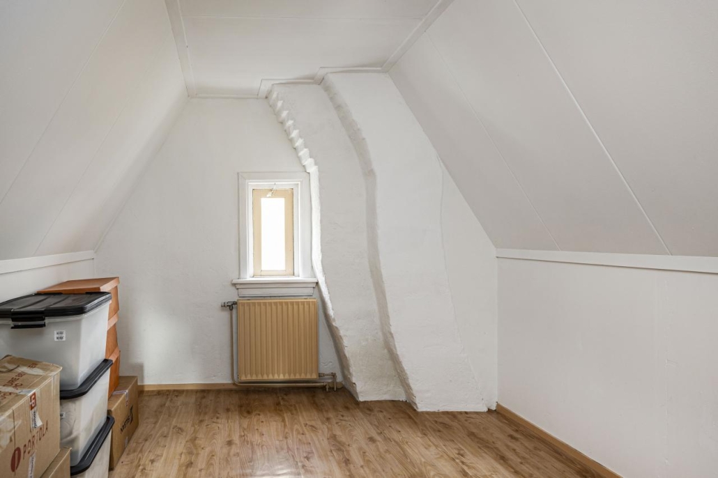 Via een vaste trap kom je op de zolderverdieping. De overloop beschikt over extra bergruimte en geeft toegang tot twee slaapkamers. Eén van deze kamers heeft bergruimte achter de knieschotten, ideaal voor het opbergen van seizoensspullen.