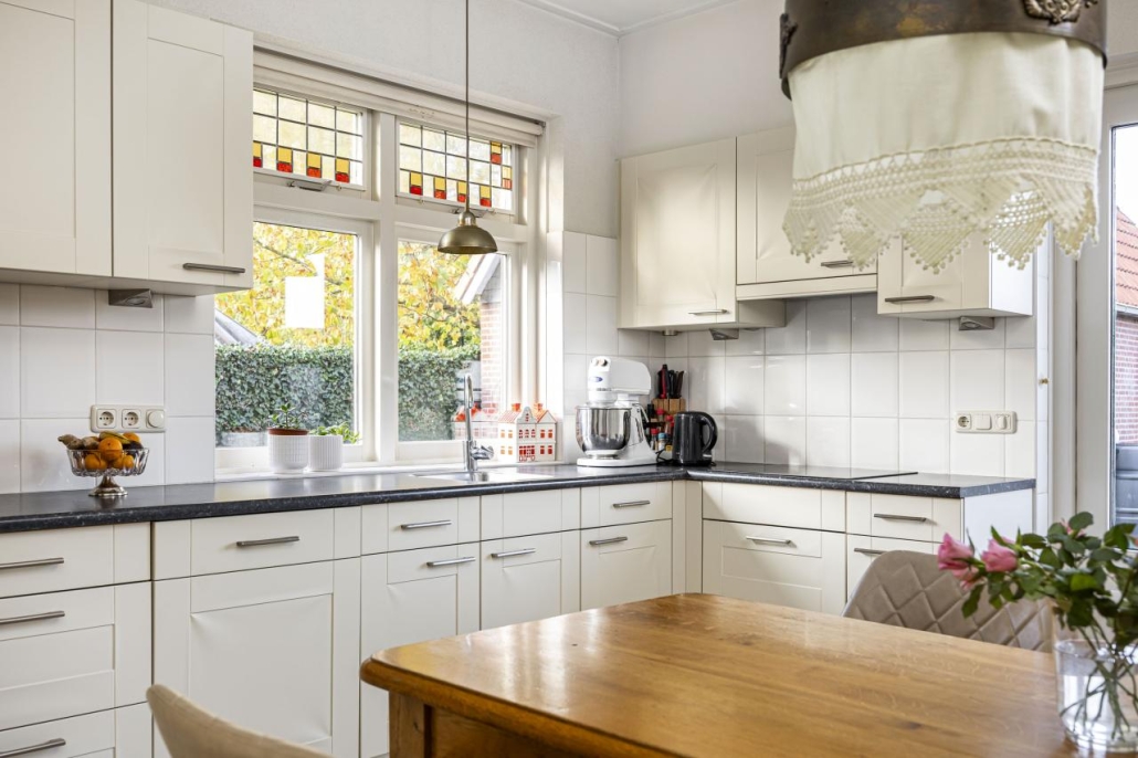 Binnen ademt de woning de sfeer van vroeger, gecombineerd met de voorzieningen van nu. Geniet van prachtige jaren '30 elementen zoals glas-in-loodramen, paneeldeuren, een kamer en suite en de originele granitovloer.