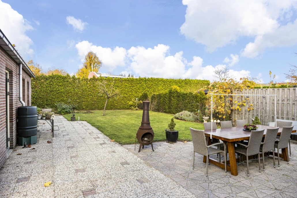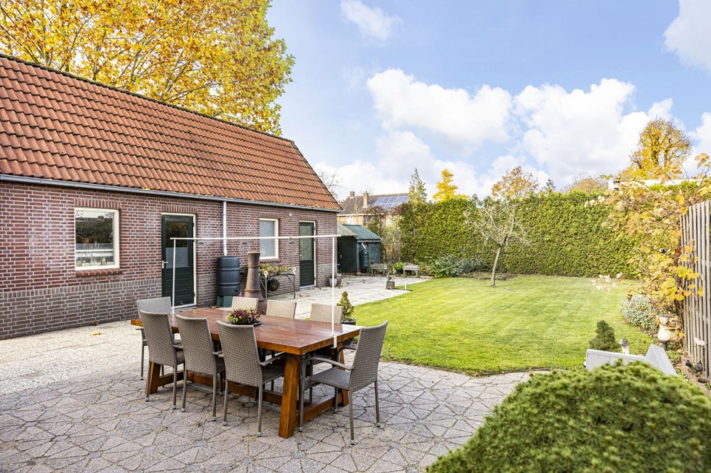 De royale tuin rondom de woning biedt veel privacy en tal van mogelijkheden om te genieten van het buitenleven. Achterin de tuin staat een houthok en bovendien beschikt het perceel over een ruime schuur met vliering: perfect als hobbyruimte, opslag of atelier.