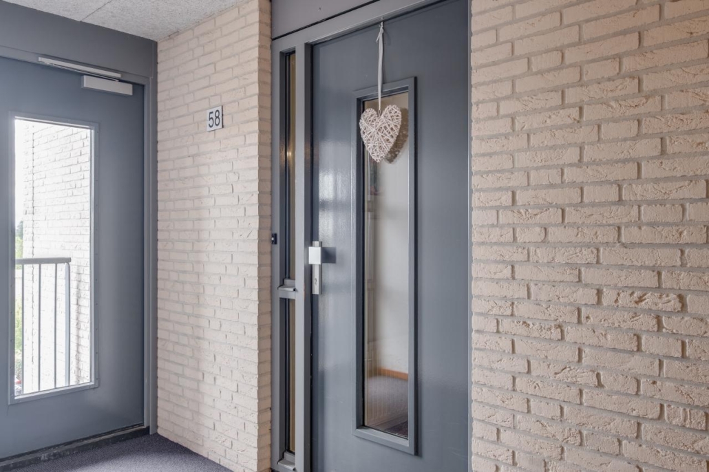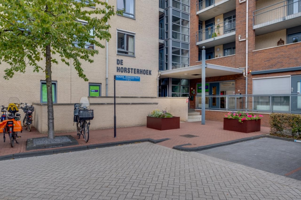 Dit 3-kamerappartement is gelegen op de 4e verdieping van het appartementencomplex De Horsterhoek, aan de rand van de Vijfhoek. Vanuit de woonkamer en het balkon geniet je van een groen uitzicht. Een heerlijke rustige woonomgeving!