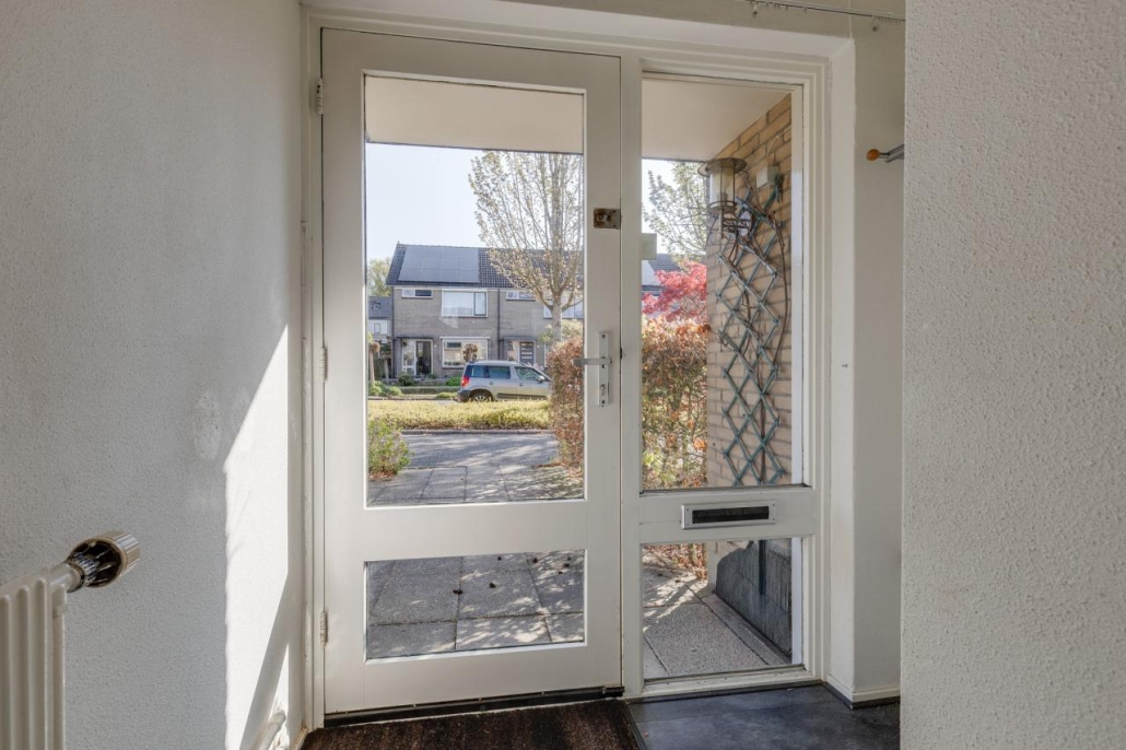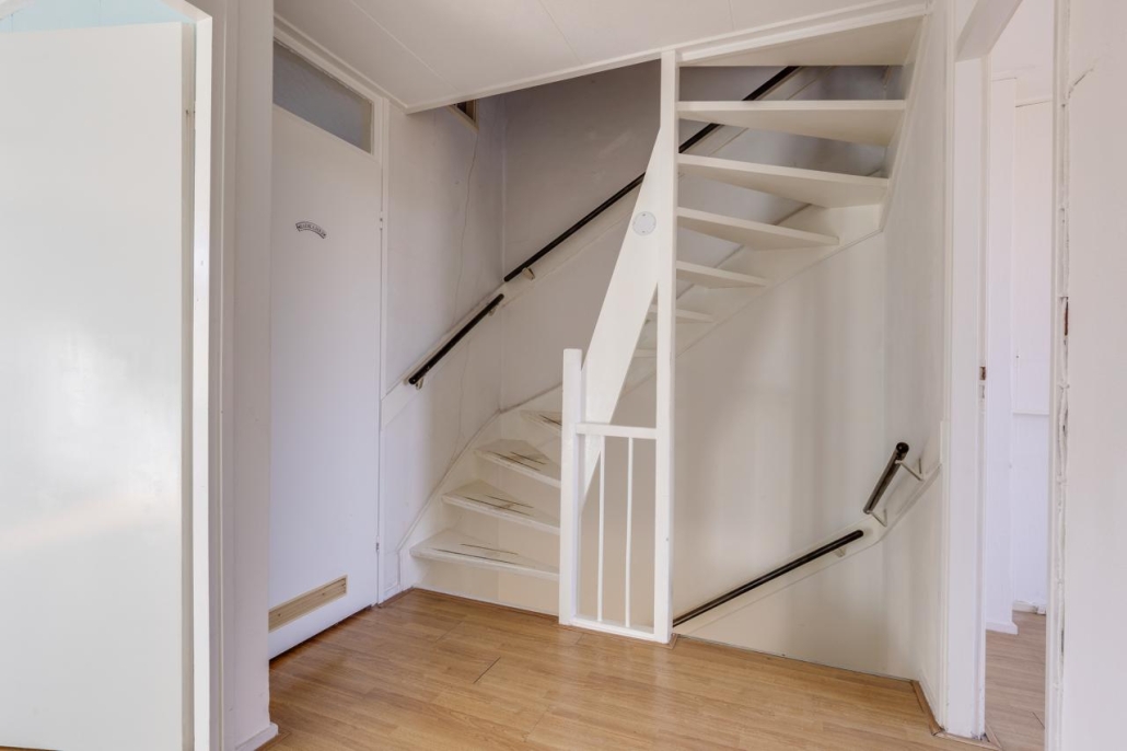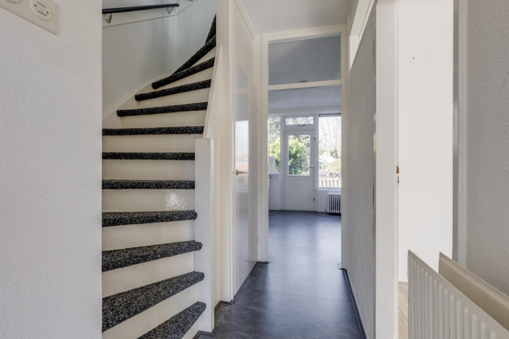 Via de entree kom je binnen in de hal met meterkast, trapopgang naar de eerste verdieping, praktische trapkast en een toilet met fonteintje. Vanuit de hal heb je toegang tot zowel de keuken als de woonkamer.