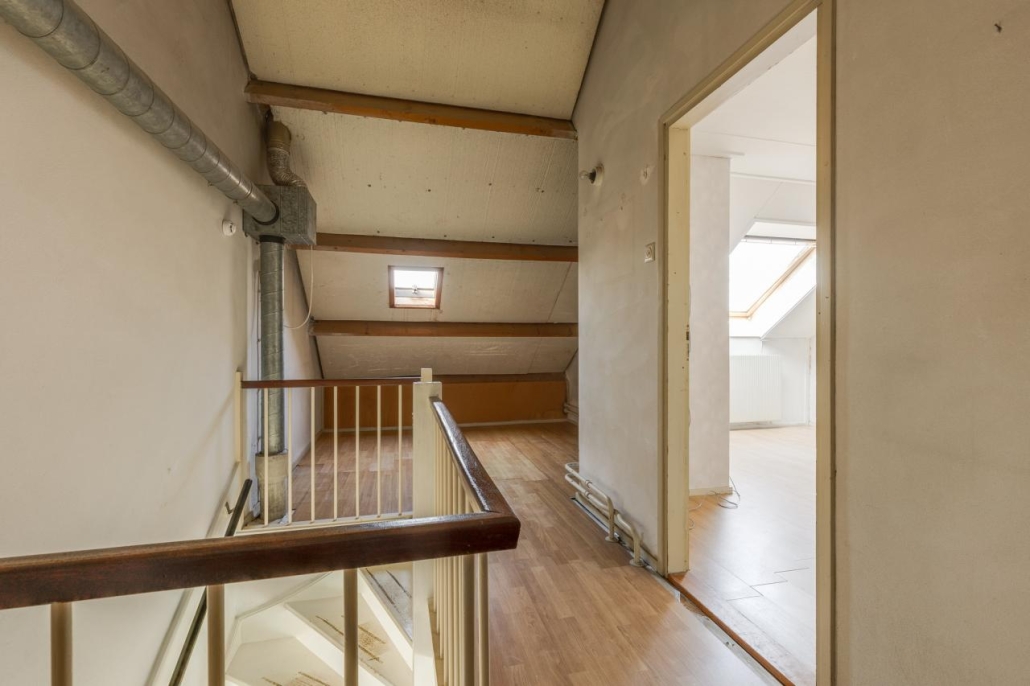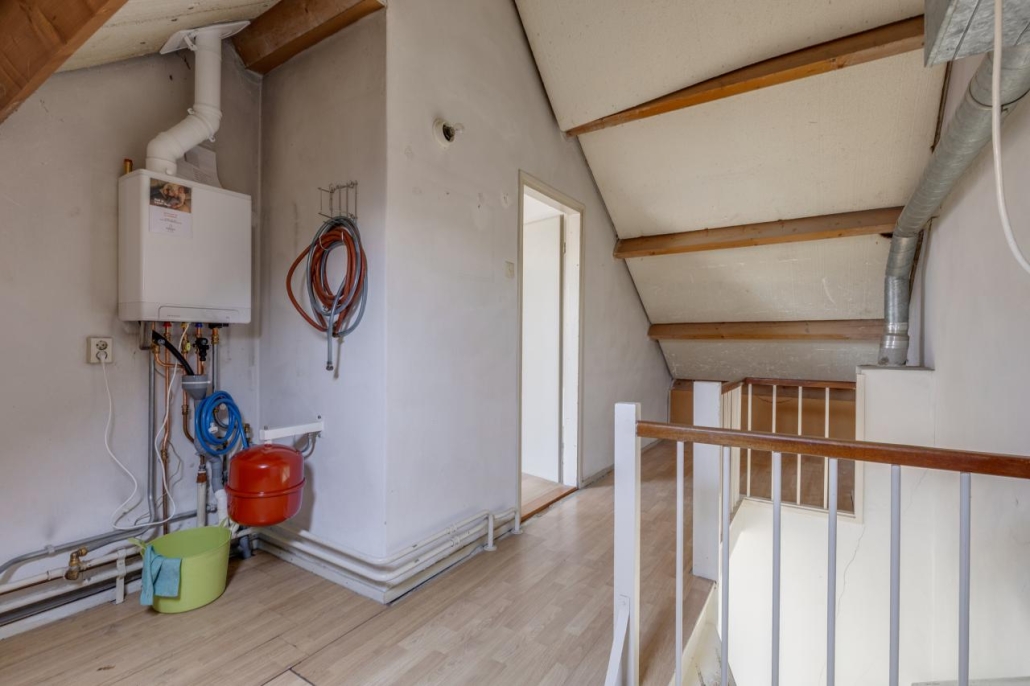 Middels een vaste trap is de tweede verdieping bereikbaar. Hier vind je een overloop/voorzolder met de opstelplaats voor de cv-ketel, aansluiting voor de wasapparatuur en een ruime vierde slaapkamer.