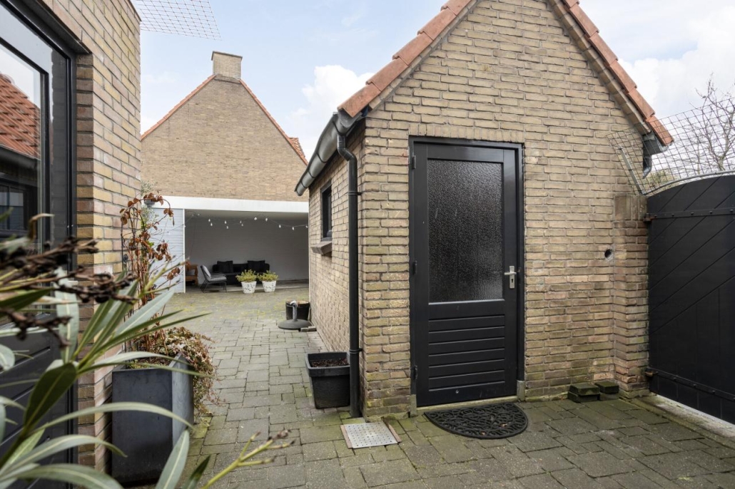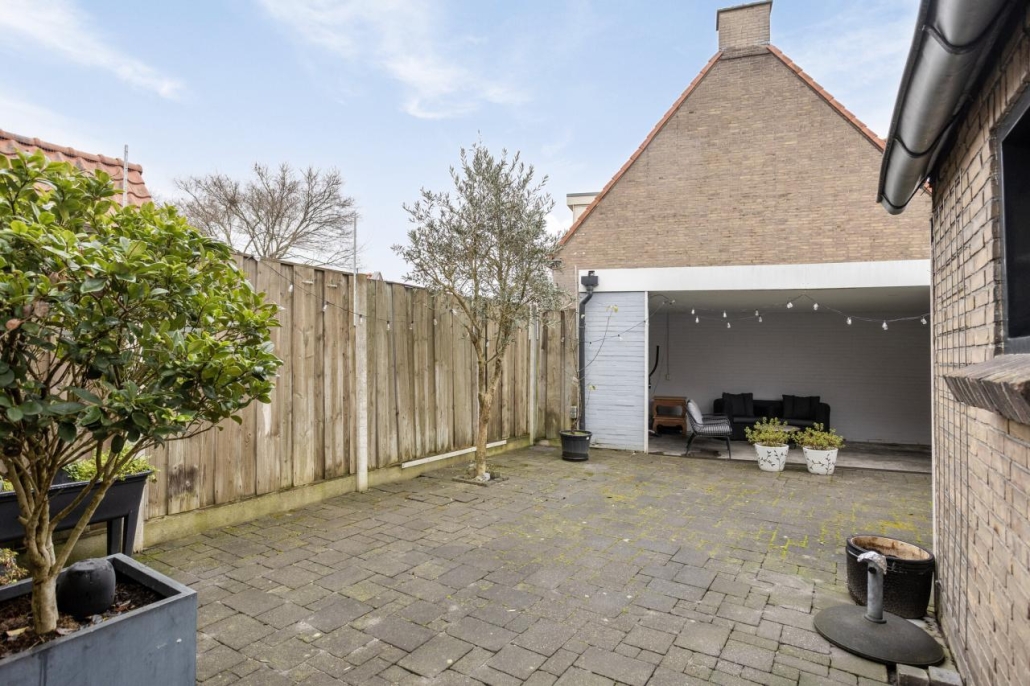 De diepe, op het zuiden gelegen achtertuin biedt zowel zon- als schaduwplekken. Voor in de tuin staat een ruime stenen berging met voldoende ruimte voor fietsen en opslag. Aan de achterzijde bevindt zich de carport, die tevens kan dienen als overkapping.