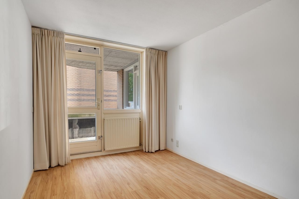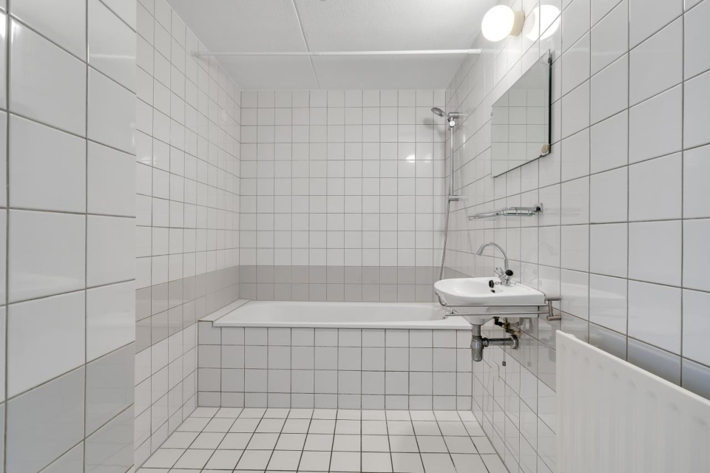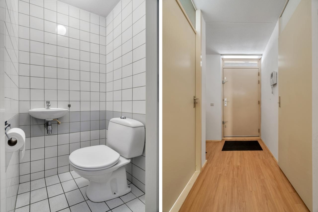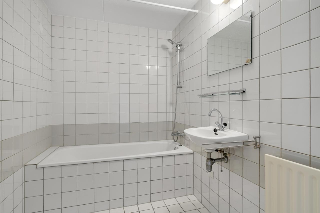 Het appartement beschikt over twee royale slaapkamers. De hoofdslaapkamer ligt aan de rustige achterzijde en biedt, net als de woonkamer, toegang tot het balkon. Aan de voorzijde bevindt zich de tweede ruime slaapkamer. De badkamer is uitgerust met een wastafel, bad/douchecombinatie en witgoedaansluiting. Het toilet is separaat.