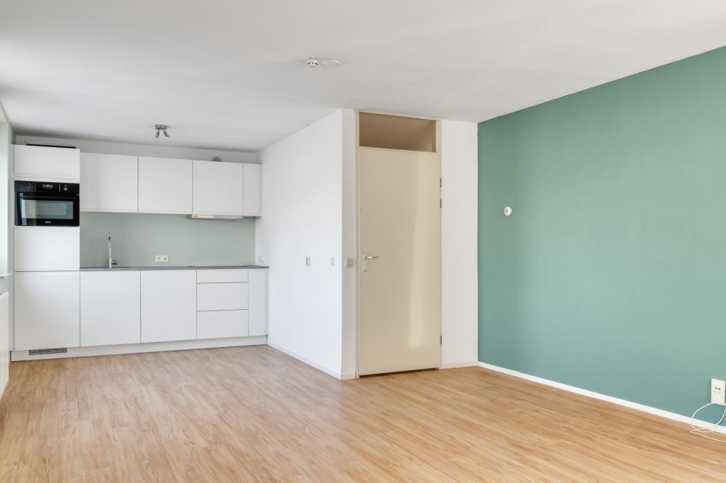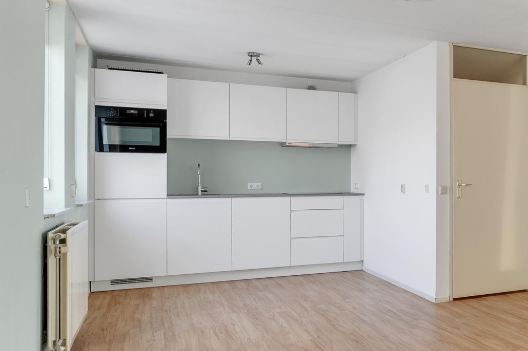 De lichte woonkamer en keuken lopen naadloos in elkaar over en geven toegang tot het ruime balkon, gelegen op het westen. Hier kun je tot in de avond genieten van de zon. De keuken is circa 2 jaar geleden vernieuwd en voorzien van moderne inbouwapparatuur, waaronder een vaatwasser, inductiekookplaat, afzuigkap en combi-oven/magnetron.