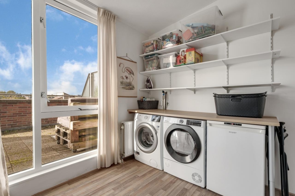 De tweede verdieping biedt nog een vierde slaapkamer, een wasruimte en toegang tot een fijn dakterras. Extra bergruimte is aanwezig via een vlizotrap in de slaapkamer.