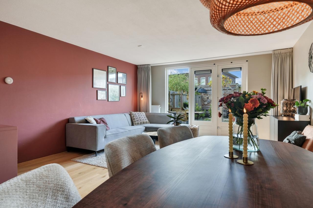 Via de voordeur stap je binnen in de hal met ruimte voor een garderobe, de meterkast, het toilet en de trapopgang naar boven. De tuingerichte woonkamer is een heerlijke plek om te verblijven, ruim, licht en sfeervol. Er is voldoende plek voor zowel een comfortabele zithoek als een grote eettafel. De openslaande deuren zorgen voor veel daglicht en geven direct toegang tot de zonnige tuin.