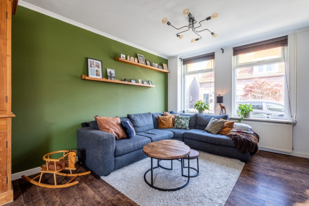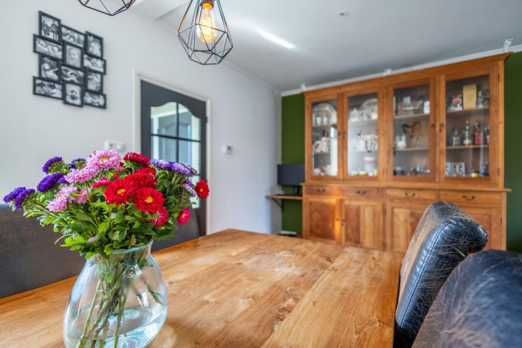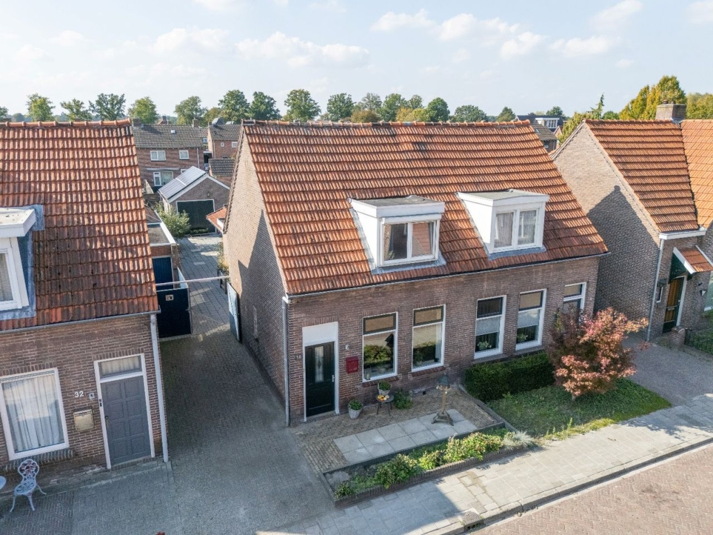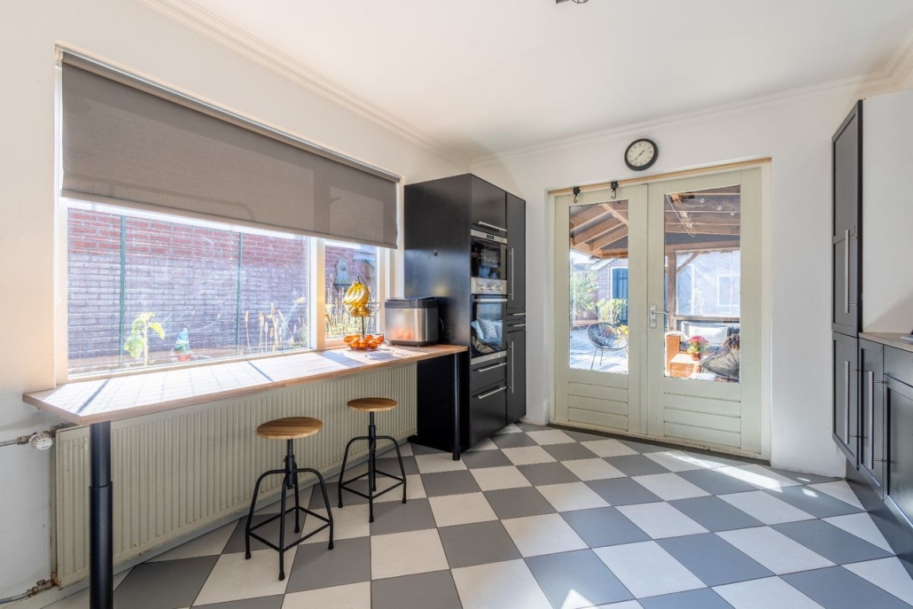 Een karakteristieke jaren ’30 twee-onder-een-kapwoning met royale aanbouw, overkapping en een grote vrijstaande stenen garage op een royaal en zonnig
