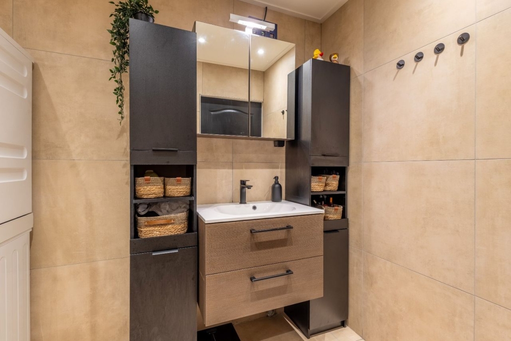 De moderne badkamer (2024) is voorzien van inloopdouche, wastafelmeubel, designradiator, wasmachine- en drogeraansluiting.