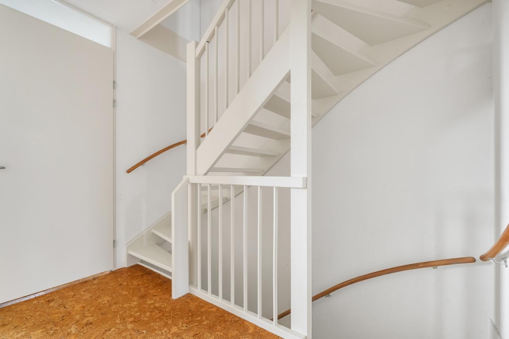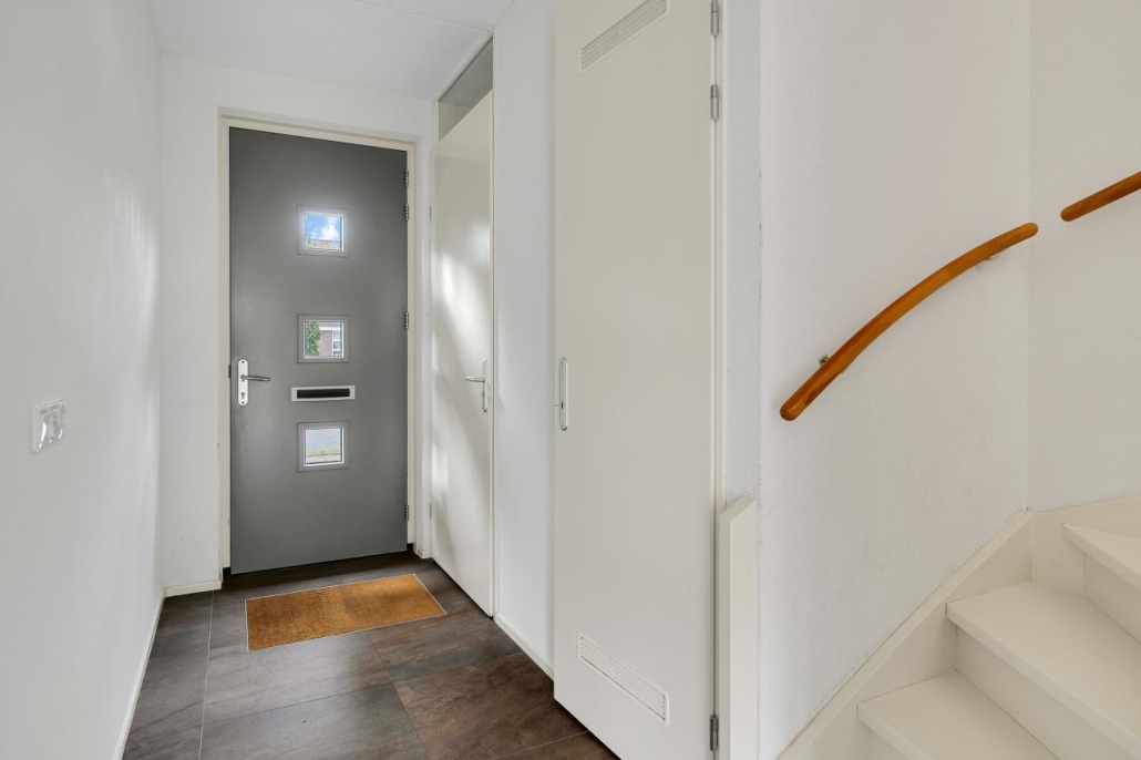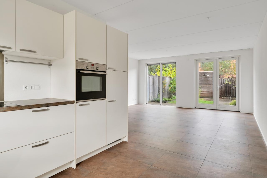Via de voordeur kom je in de hal met toilet, meterkast en trapopgang. Vanuit hier stap je binnen in de lichte woonkamer, die aan de achterzijde is gelegen en beschikt over grote raampartijen waardoor veel daglicht binnenvalt. De keuken bevindt zich aan de voorzijde en biedt een prettig uitzicht over het rustige hofje.