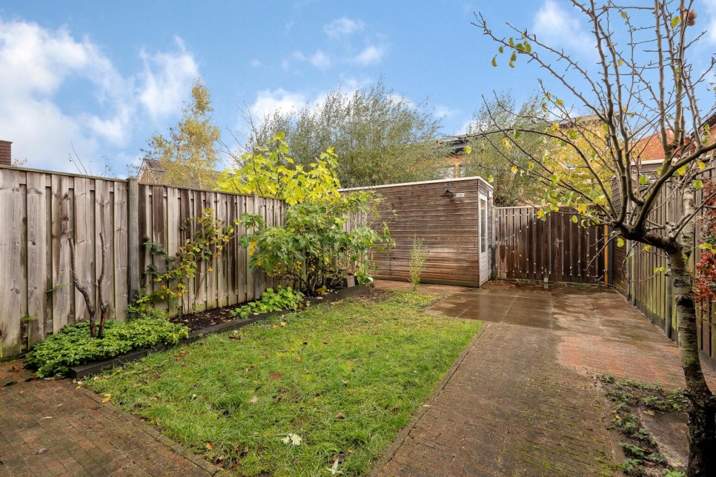 De achtertuin is ruim aangelegd, met een berging en een achterom. Bovendien bestaat de mogelijkheid om de woning aan de achterzijde verder uit te bouwen, wat extra woonruimte kan creëren.