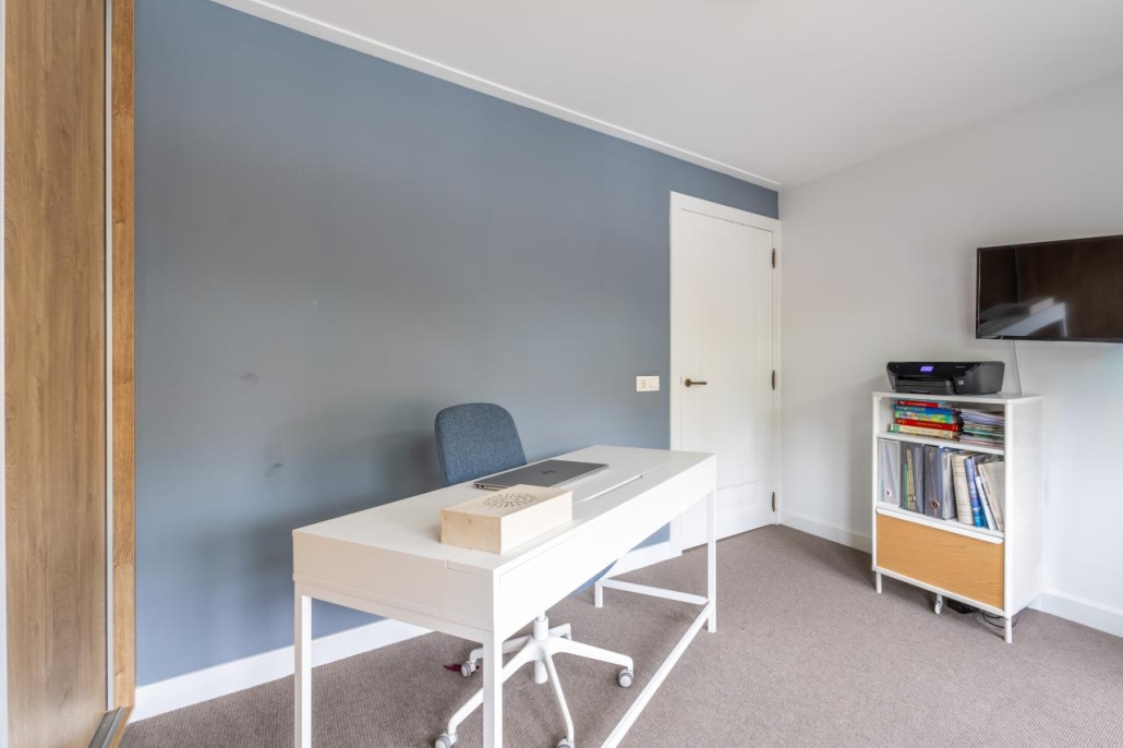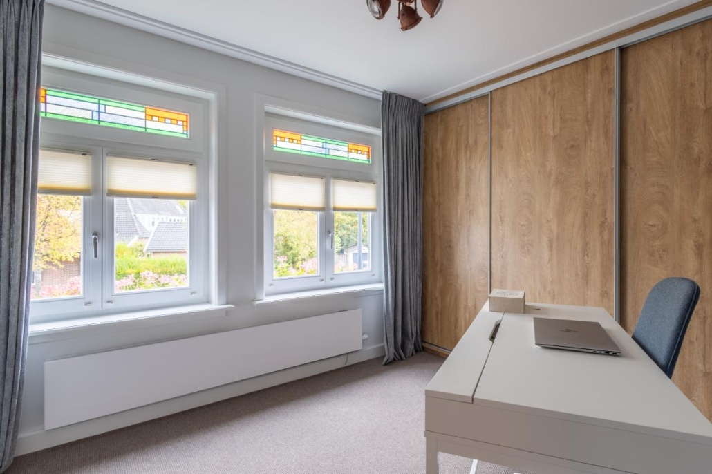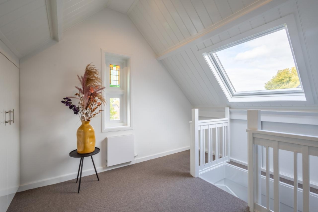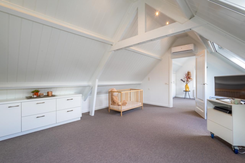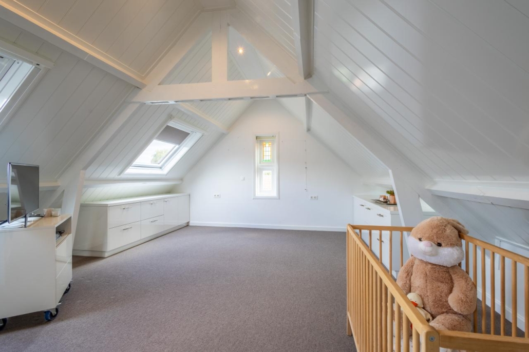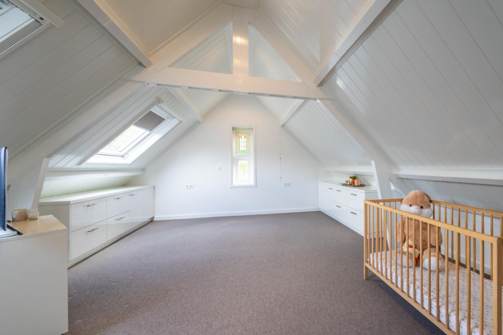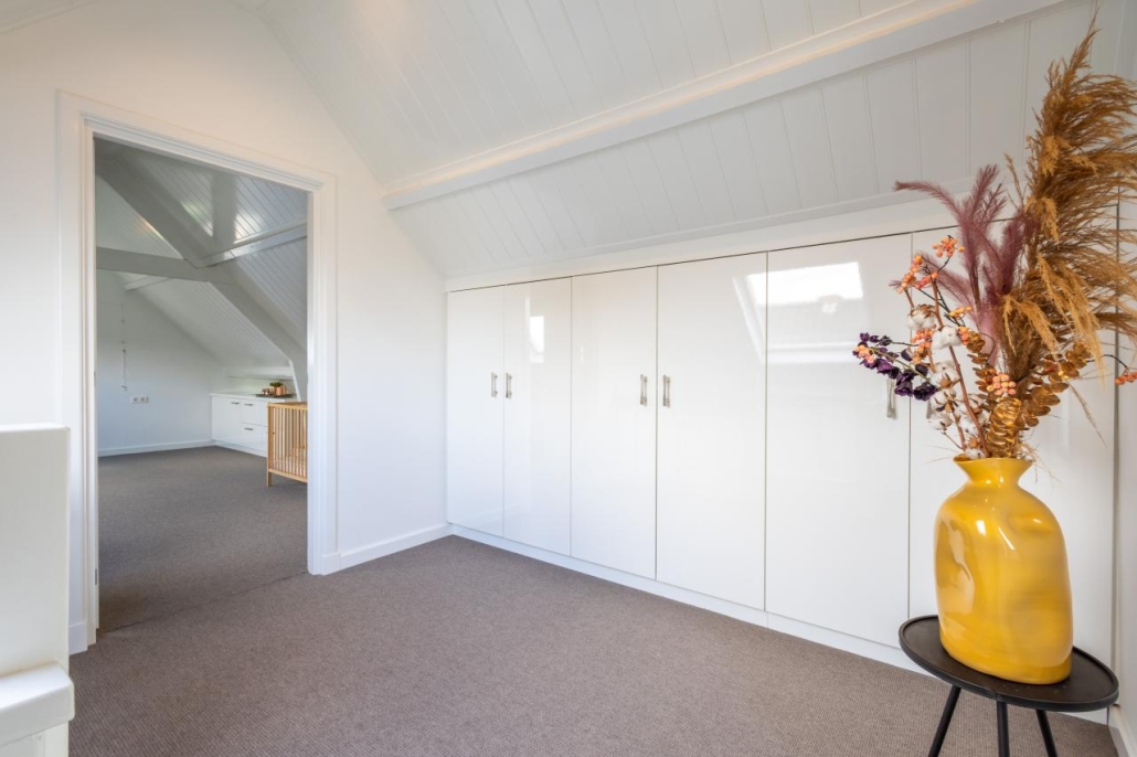 Via een vaste trap is de zolder bereikbaar. Deze verdieping is volledig geïsoleerd, voorzien van dakramen en keurig afgewerkt middels op maat gemaakte kasten. Dankzij de vaste trap en de hoogte is dit een volwaardige verdieping die uitstekend dienst kan doen als extra slaapkamer, werkkamer of hobbyruimte.