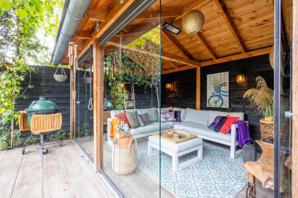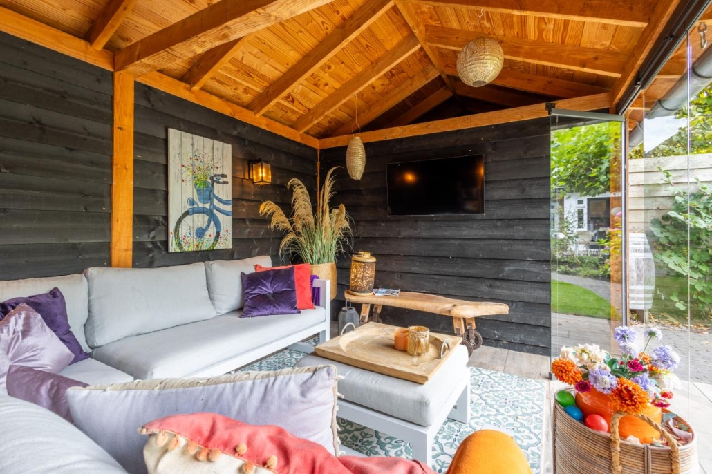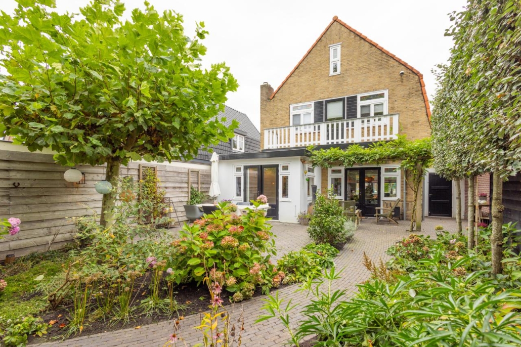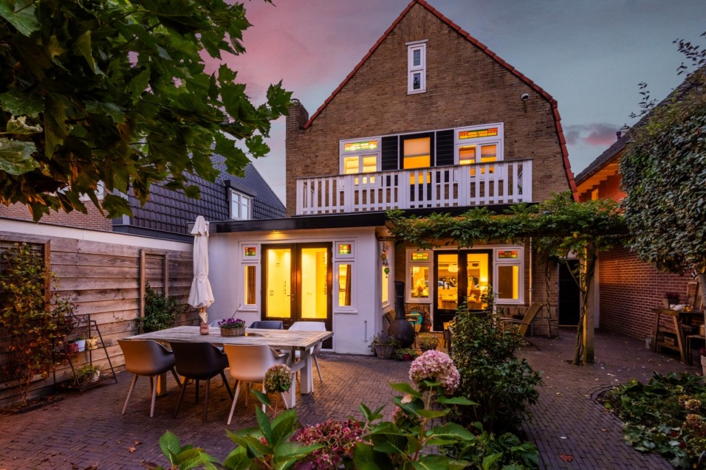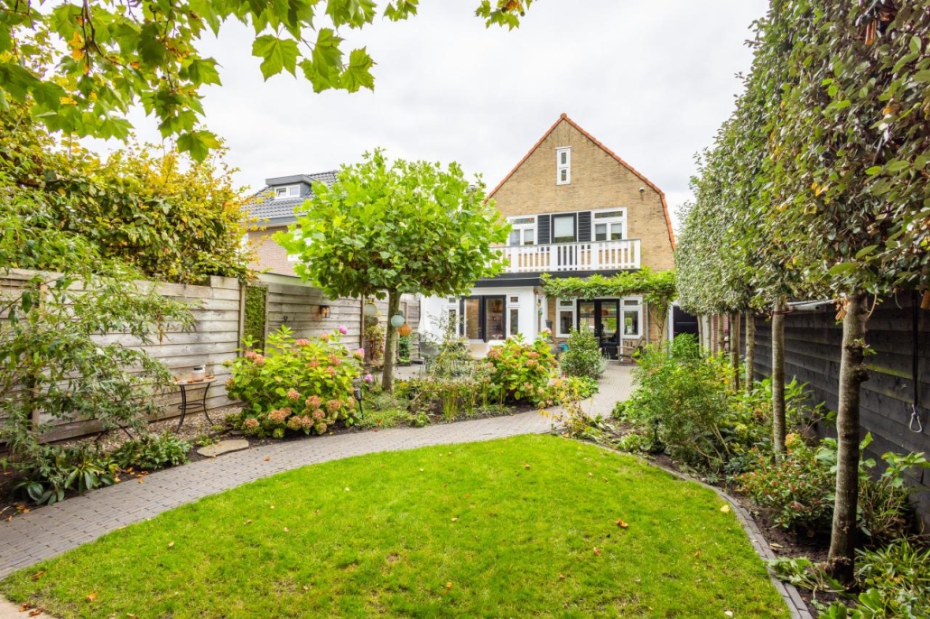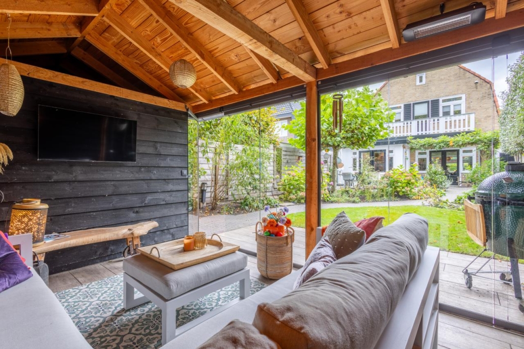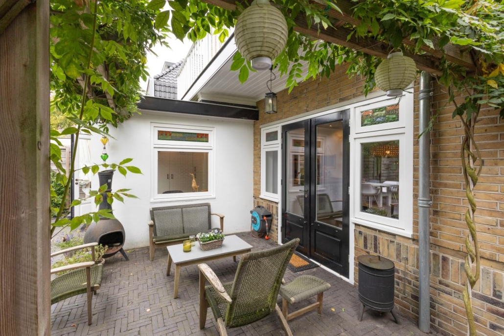 De achtertuin is speels aangelegd en vormt een sfeervolle buitenruimte met een fijne balans tussen bestrating en groen. Dankzij de gunstige ligging geniet je hier de hele dag van de zon. Achterin de tuin bevindt zich een houten serre met berging, geheel in stijl met de woning. De tuin biedt volop privacy en een heerlijke plek om in alle rust te ontspannen. Ook de voortuin is verzorgd aangelegd en draagt bij aan de charmante uitstraling van het geheel.