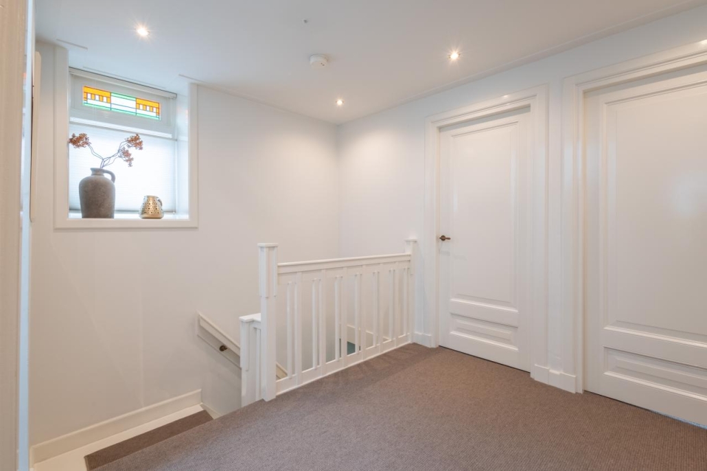 Op de eerste verdieping bevinden zich drie verzorgde slaapkamers. De ouderslaapkamer beschikt over een op maat gemaakte inloopkast. De badkamer is stijlvol ingericht met een inloopdouche, wastafelmeubel, tweede toilet en vloerverwarming. Momenteel is een van de slaapkamers in gebruik als wasruimte.