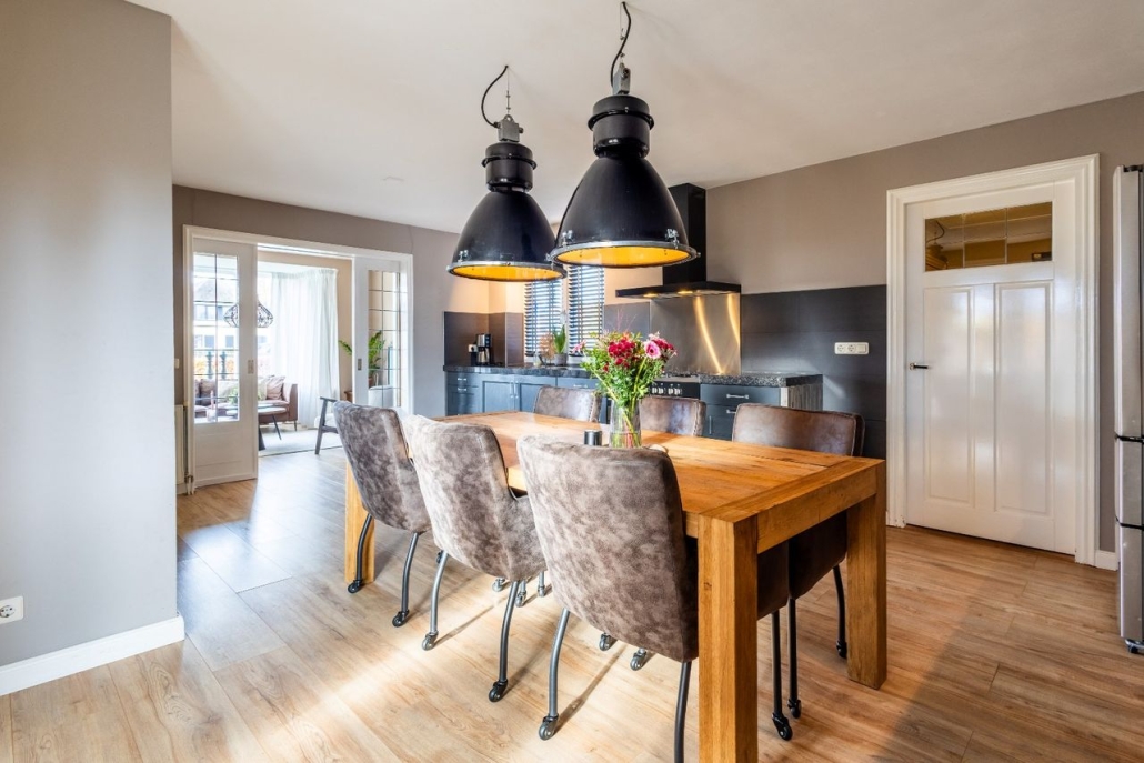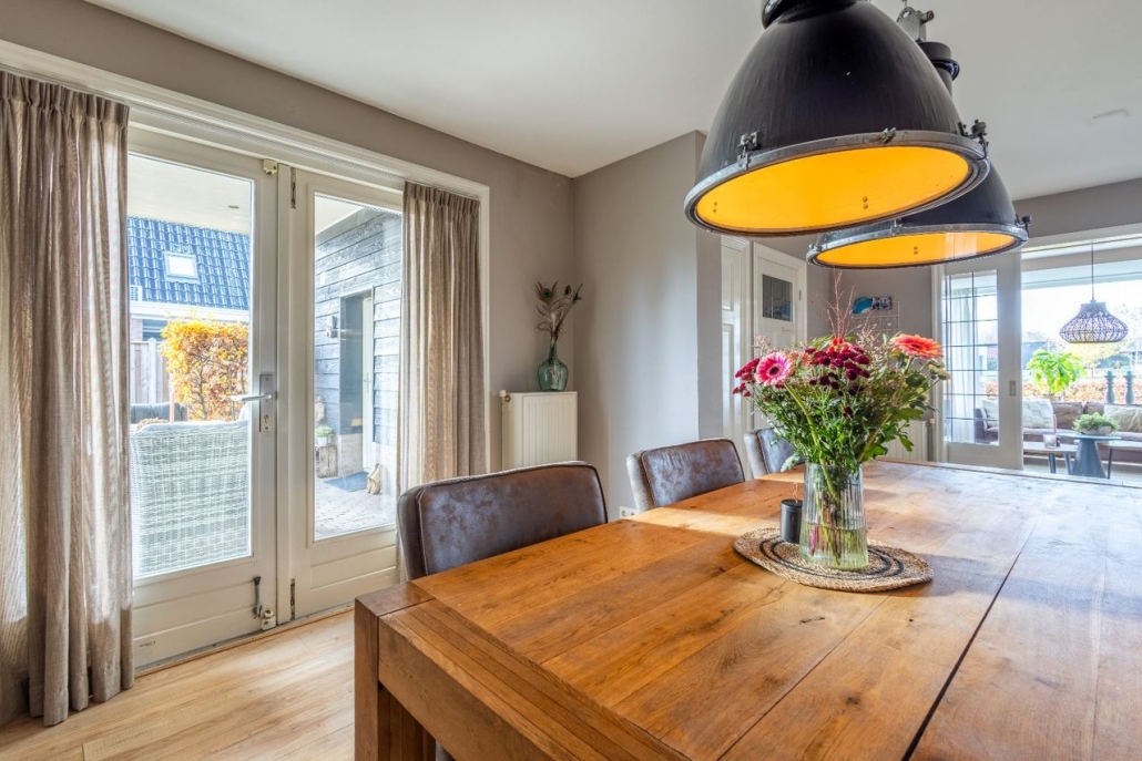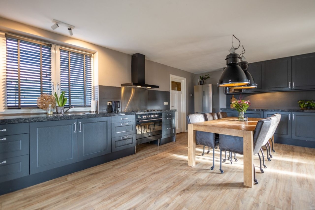 De gesloten woonkeuken is voorzien van een complete inbouwkeuken (2010) met daarin een 6-pits gasfornuis incl. geïntegreerde oven, RVS afzuigkap, koelkast, vaatwasser en combi-magnetron.
