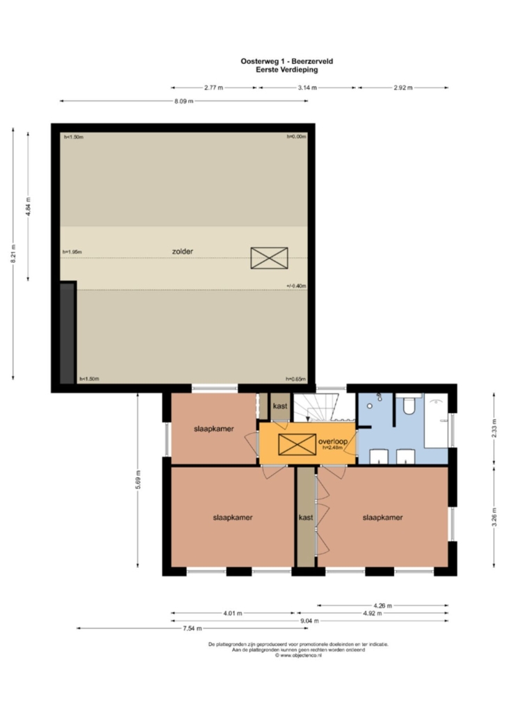 1e verdieping: overloop voorzien van vlizotrap naar de 2e verdieping; 3 moderne slaapkamers, waarvan 1 met kastenwand; moderne en complete badkamer.
