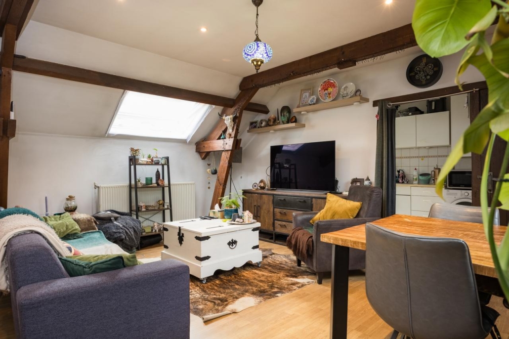 In de voormalige hooizolder is een appartement gerealiseerd (met woonkamer, keuken, badkamer en 2 slaapkamers) dat momenteel verhuurd wordt _ ideaal als investering of voor dubbele bewoning.
