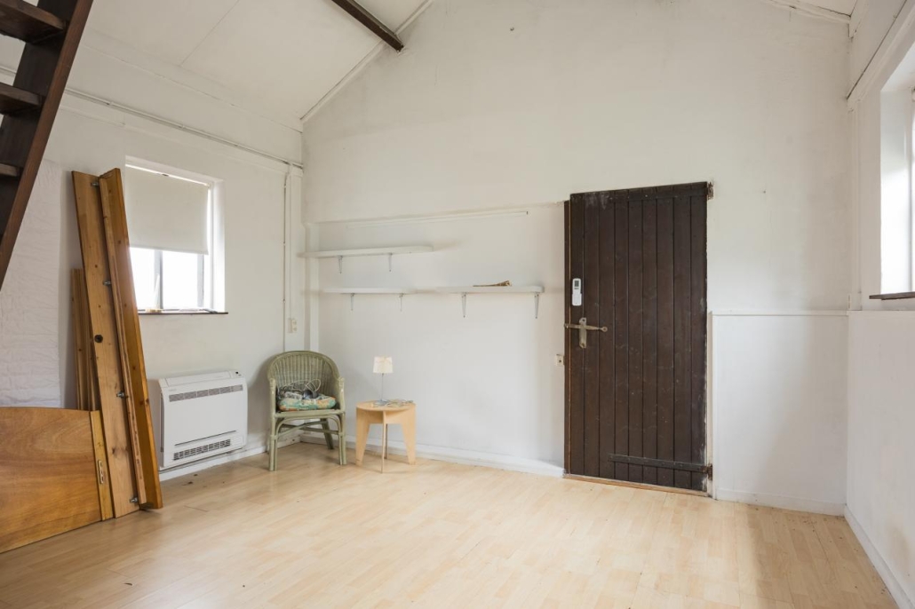 De voormalige wagenloods is verbouwd tot atelierruimte met zolder _ perfect voor werk aan huis of creatieve bezigheden.