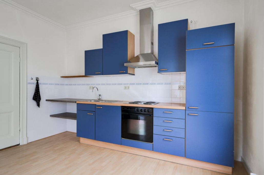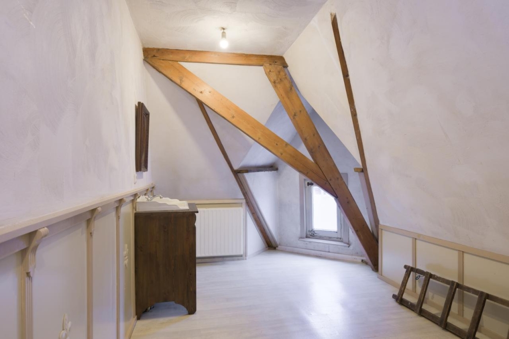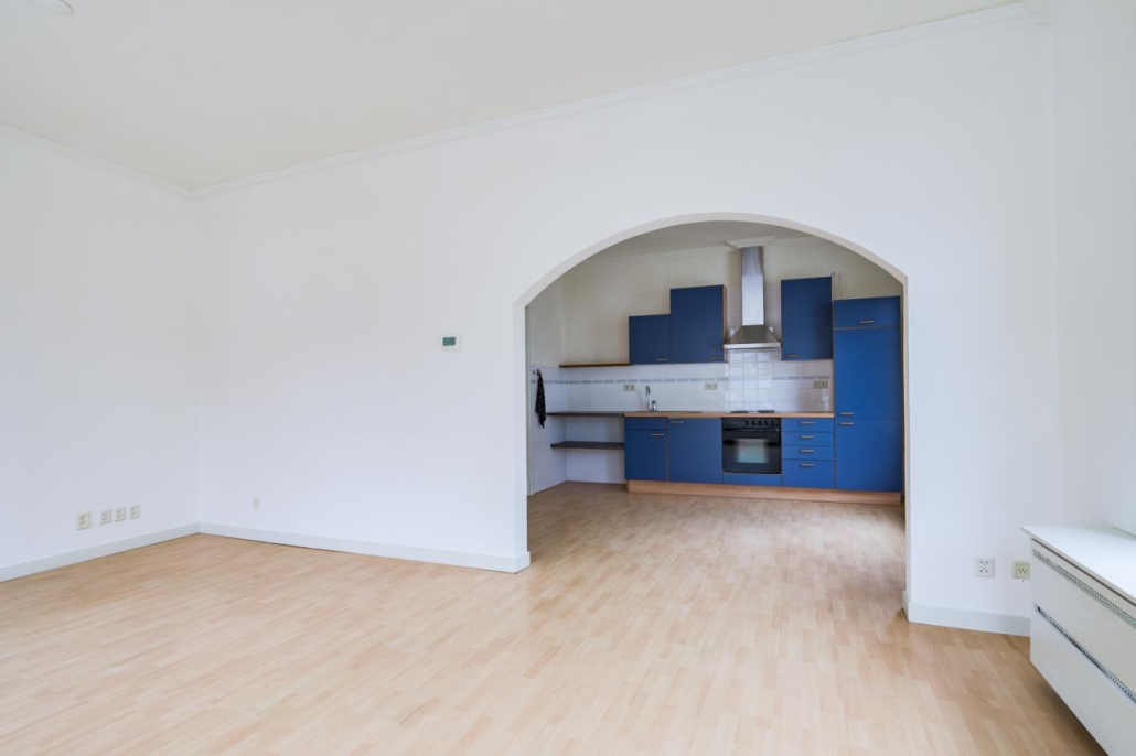De eerste verdieping vormt momenteel het hart van de woning met een lichte en ruime woonkamer en een open keuken. Dankzij de grote raampartijen geniet je hier van veel daglicht. De keuken is praktisch ingericht en staat via een brede opening in verbinding met de woonkamer.