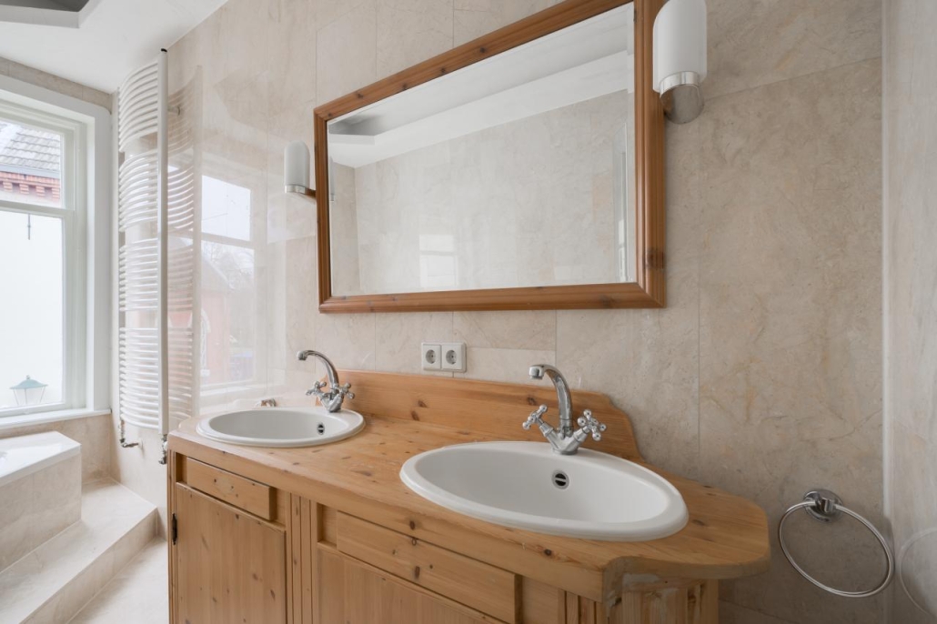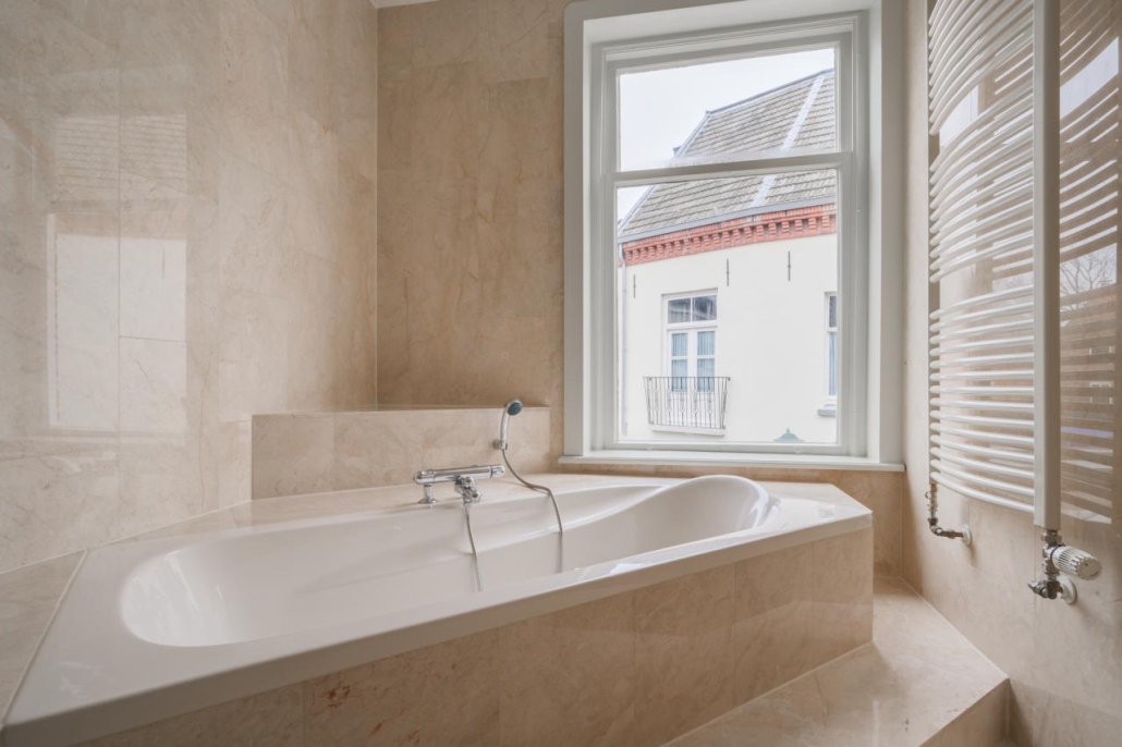 Daarnaast bevinden zich op deze verdieping een separaat toilet, een kast met cv-installatie en een complete badkamer met ligbad, aparte douche en dubbel wastafelmeubel.