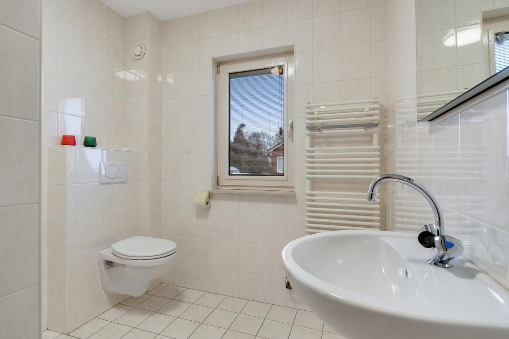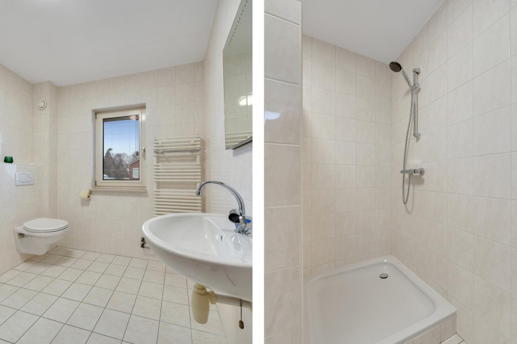 Op de begane grond bevindt zich tevens een slaapkamer met badkamer, ideaal voor gelijkvloers wonen of toekomstgericht gebruik. Tot slot beschikt de woning over een ruime berging met vlizo die zowel van binnen als buiten te bereiken is.